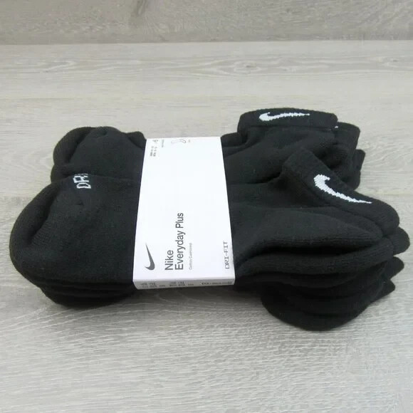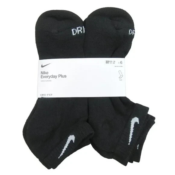 Nike Everyday Plus Cushion Dri-Fit Low Socks 6 Pack Black w/ White Nike Swoosh Logo