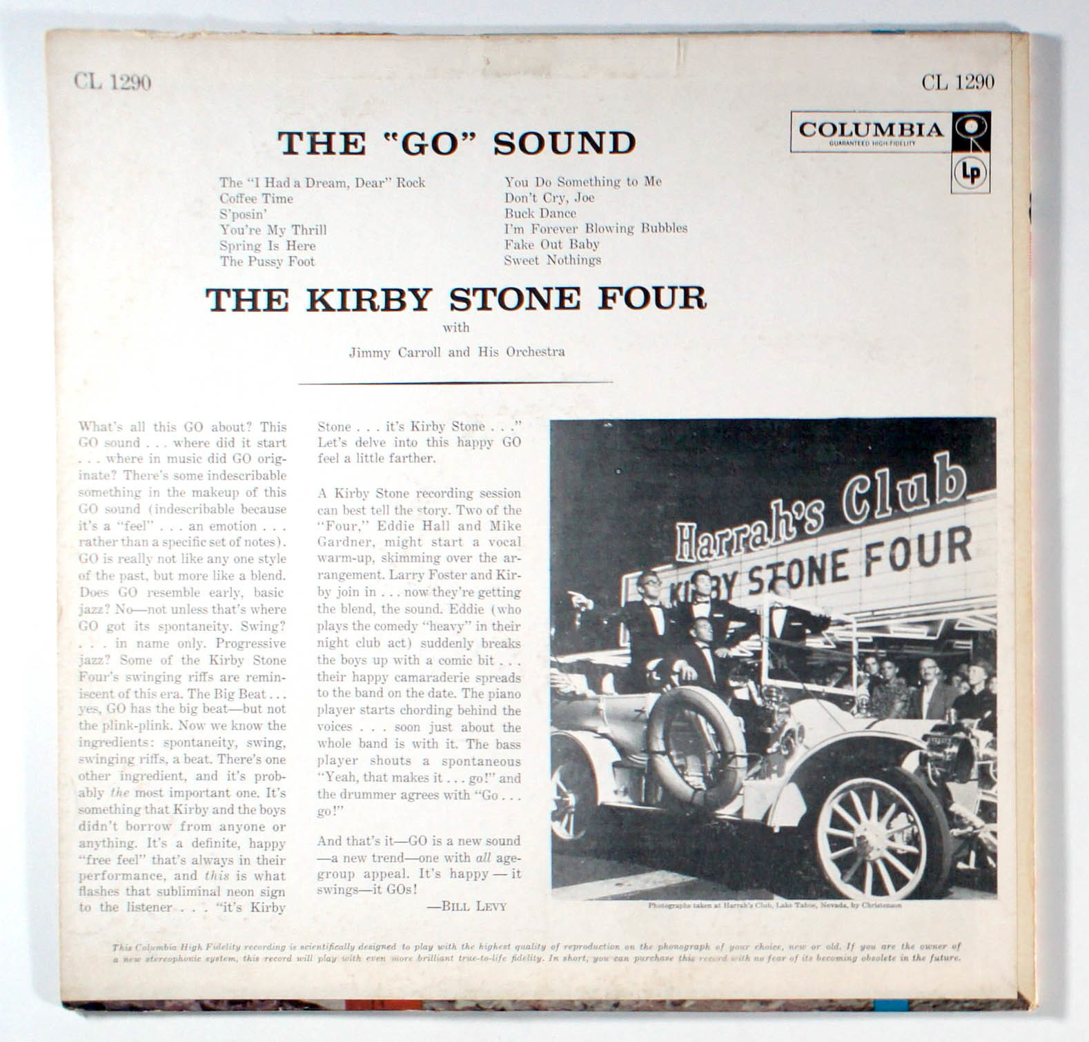 The "Go" Sound, by Kirby Four Stone, showcases the group's signature "Go Sound," a vibrant blend of swing jazz, vocalese, and early rock and roll that defined their unique vocal style. The album features 12 tracks, including upbeat covers of pop standards and originals, characterized by tight harmonies and a lively, feel-good energy that appealed to audiences of the late 1950s. Historically significant for capturing the quartet's peak popularity after their 1958 hit Baubles, Bangles and Beads, the album reflects the era's transition from big band to more contemporary pop sounds. The lead single, The "I Had a Dream, Dear" Rock, was a notable release, though it did not achieve the chart success of their earlier Grammy-nominated hit. Other standout tracks like Coffee Time and The Pussy Foot further highlight the group's playful, jazz-infused approach, making the album a key artifact of their discography.