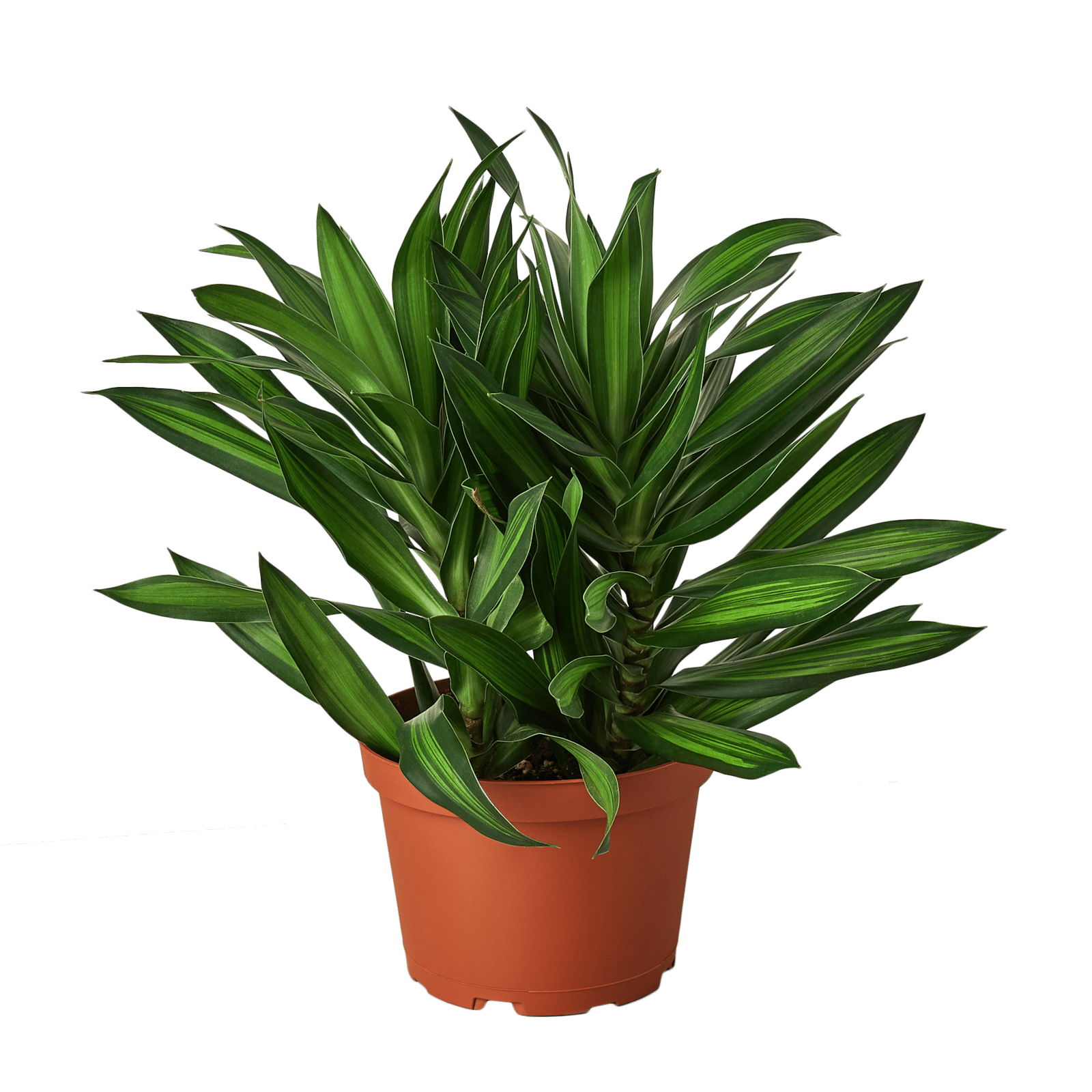 Botanical Name: Dracaena Reflexa 'Song of Jamaica'Common Name(s): Dragon TreeDescription: The Dracaena Plant has narrow smooth leaves with a green color. This hardy plant has a multi-stemmed shrub with whorls of strappy lime green / dark green variegated leaves. This Dracaena Song of Jamaica in a 6-inch pot is great for larger assortments or areas in your home or office near windows. Dracaenas compose of a large group of popular foliage plants. Dracaenas grow well at average room temperatures and like ample light.