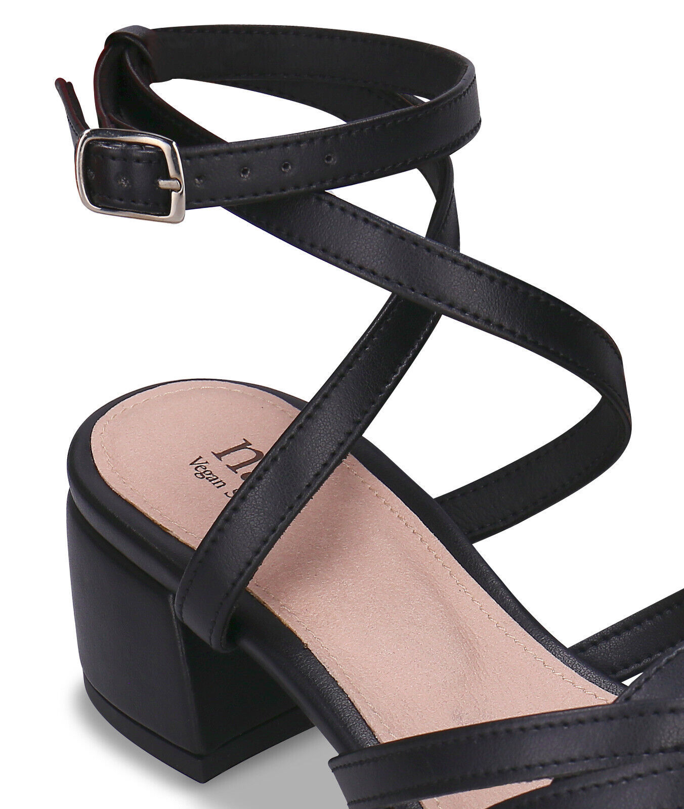 Chaussures noires talons véganes femmes slingback bout ouvert en Cuir de Pomme