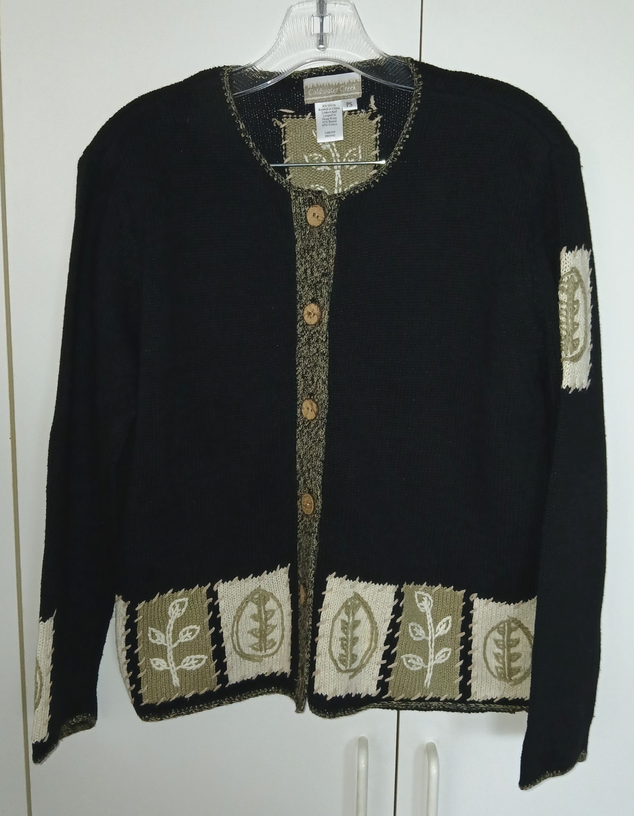 THIS IS A NICE LADIES COLDWATER CREEK BUTTON LONG-SLEEVED CARDIGAN IN A SIZE PS. IT IS IN EXCELLENT, GENTLY WORN, CONDITION.