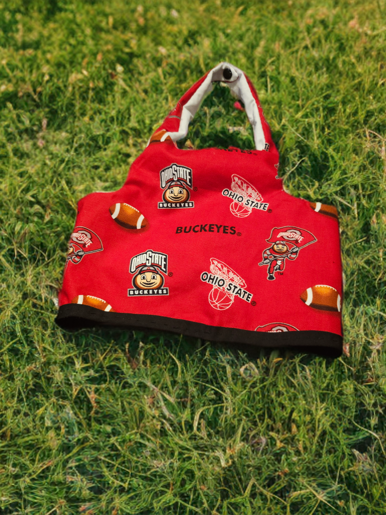 Dog/Cat Vest . Hand-made, Ohio State Buckeyes. Medium, 20" long, 6" neck, with adjustable strap. Shipped with USPS Ground Advantage.