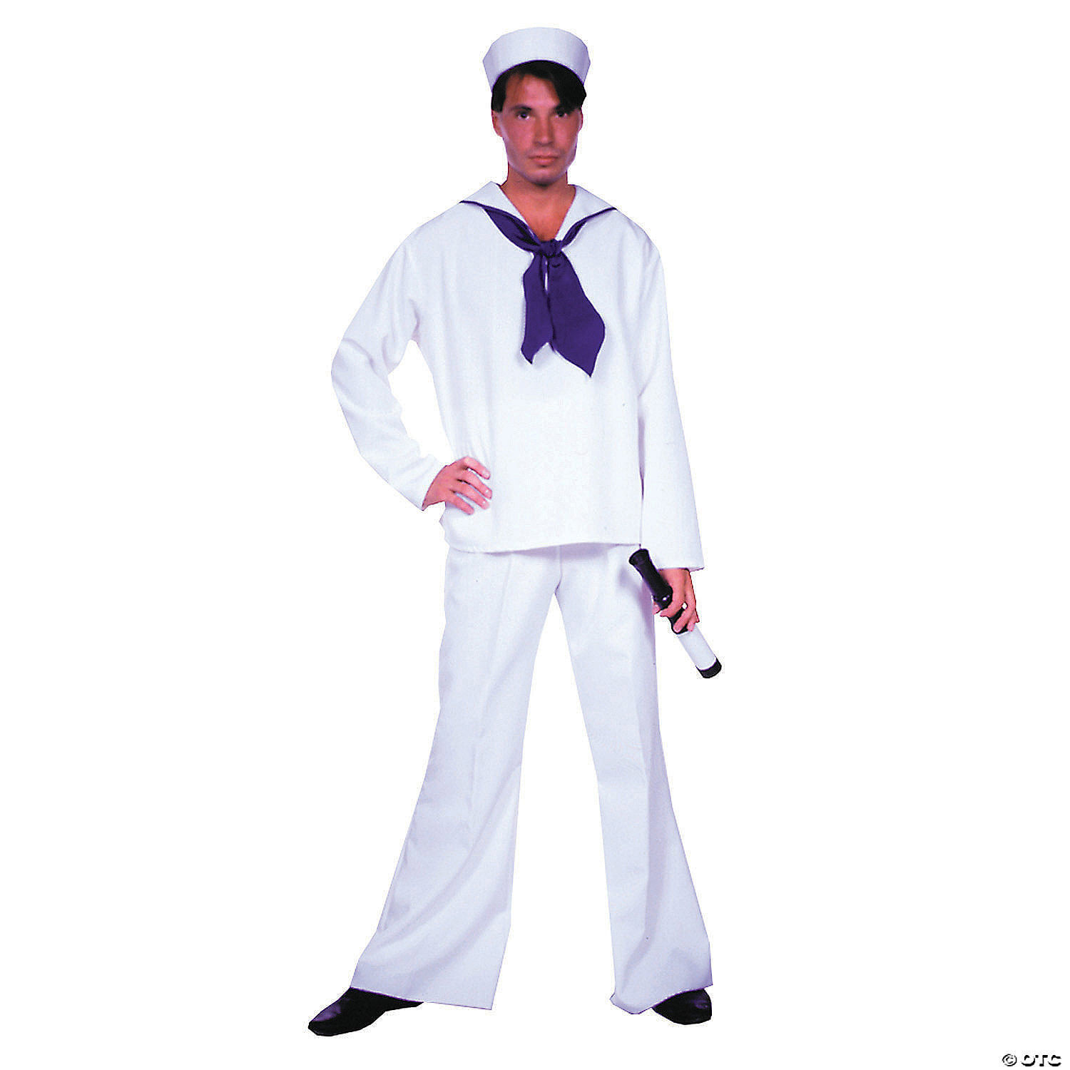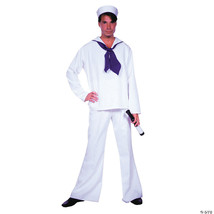 Need a great Halloween costume, but don't have any ideas? You've come to the right place. You're sure to find what you're looking for in our incredible selection of Halloween costumes for men. Perfect for costume parties or trick or treating with the kids, this Sailor Adult Men's Costume is a magnificent choice for making your Halloween a memorable night. Hat not included. Includes:? White polyester shirt? Blue scarf? Elastic waist pants Imported.
