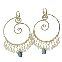 Ivory pearls and your choice of bottom stone on hammered scroll shapes, about 2".