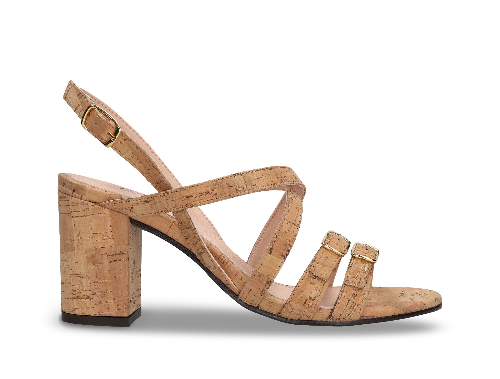 Scarpe donna vegane sling back cinturini tacco décolleté fibbia sughero naturale