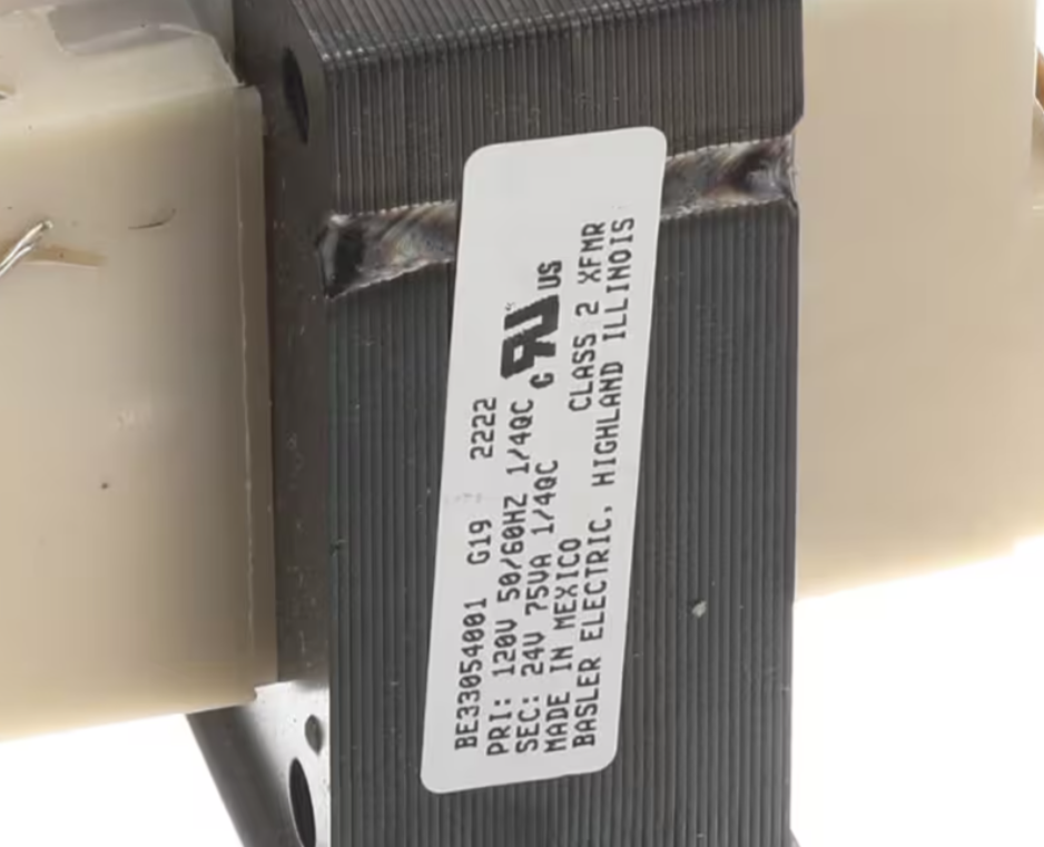 The Bunn BE33054001 is a high-performance step-down transformer engineered to convert 120V input to 24V output, supplying essential low-voltage power for control boards, valves, and other electronics in beverage dispensing systems. With a 75VA power rating and 50/60Hz compatibility, this OEM part ensures safe, efficient, and uninterrupted operation of your Bunn equipment in commercial environments.