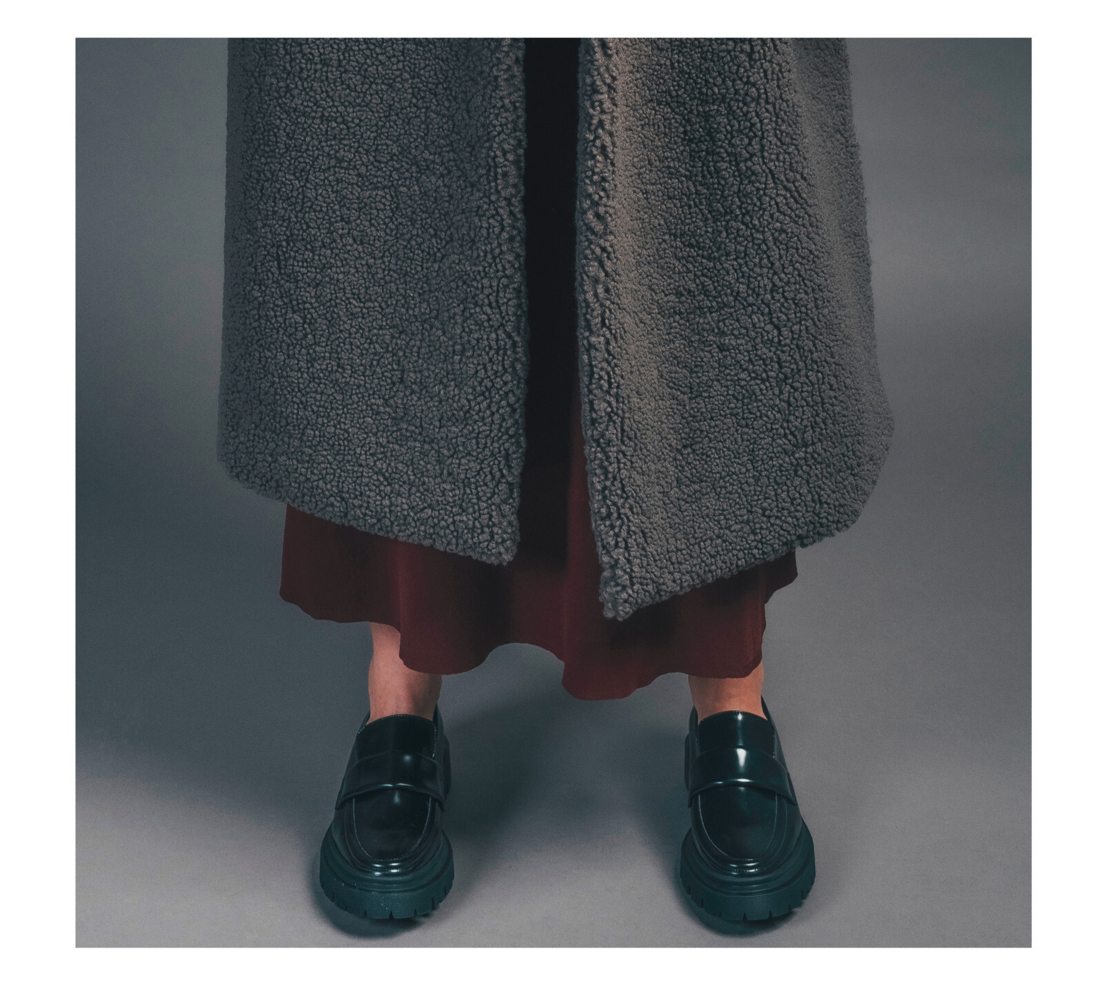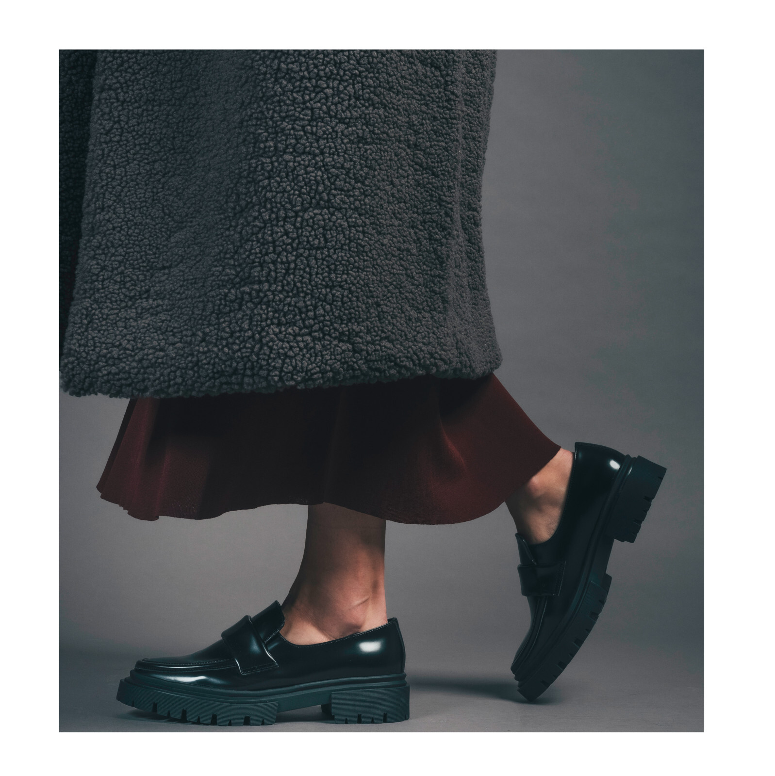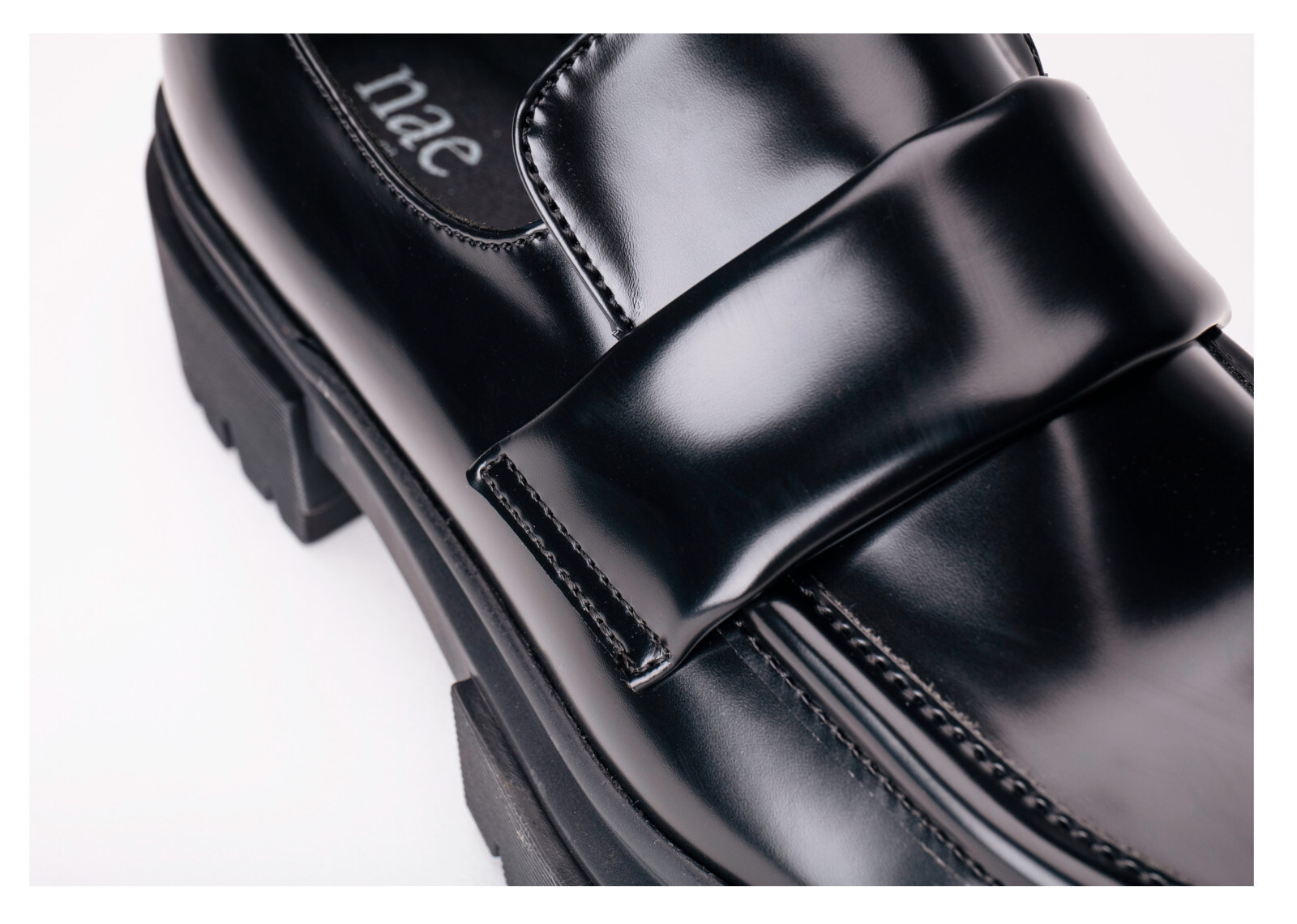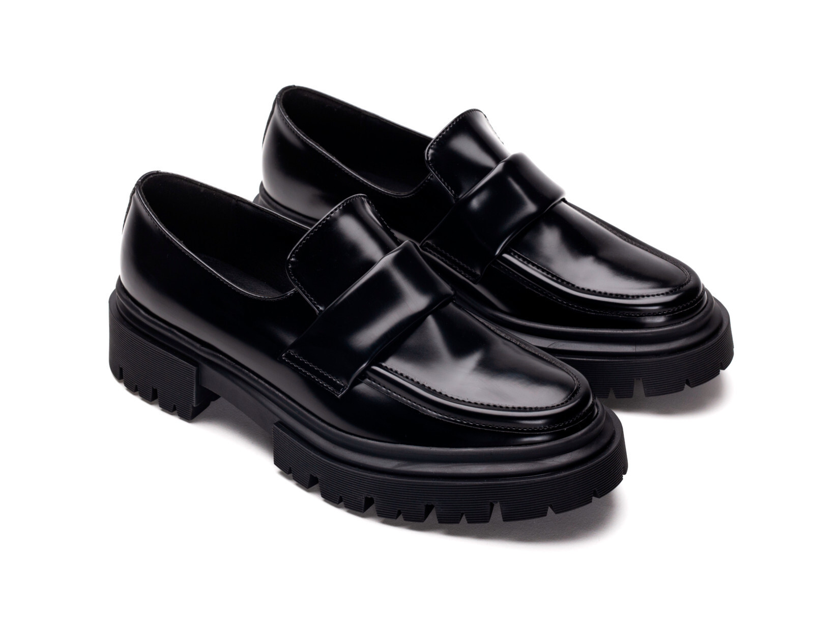 Zapato vegano mocasín moderno negro con suela chunky y forro transpirable