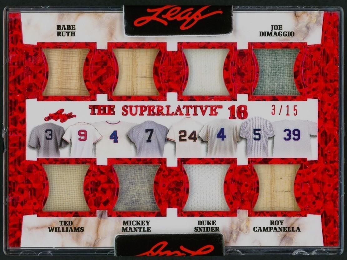 2023 Leaf Superlative 16 Ruth/Mantle/DiMaggio/Maris/Mays/Berra Bat/Jersey #3/15