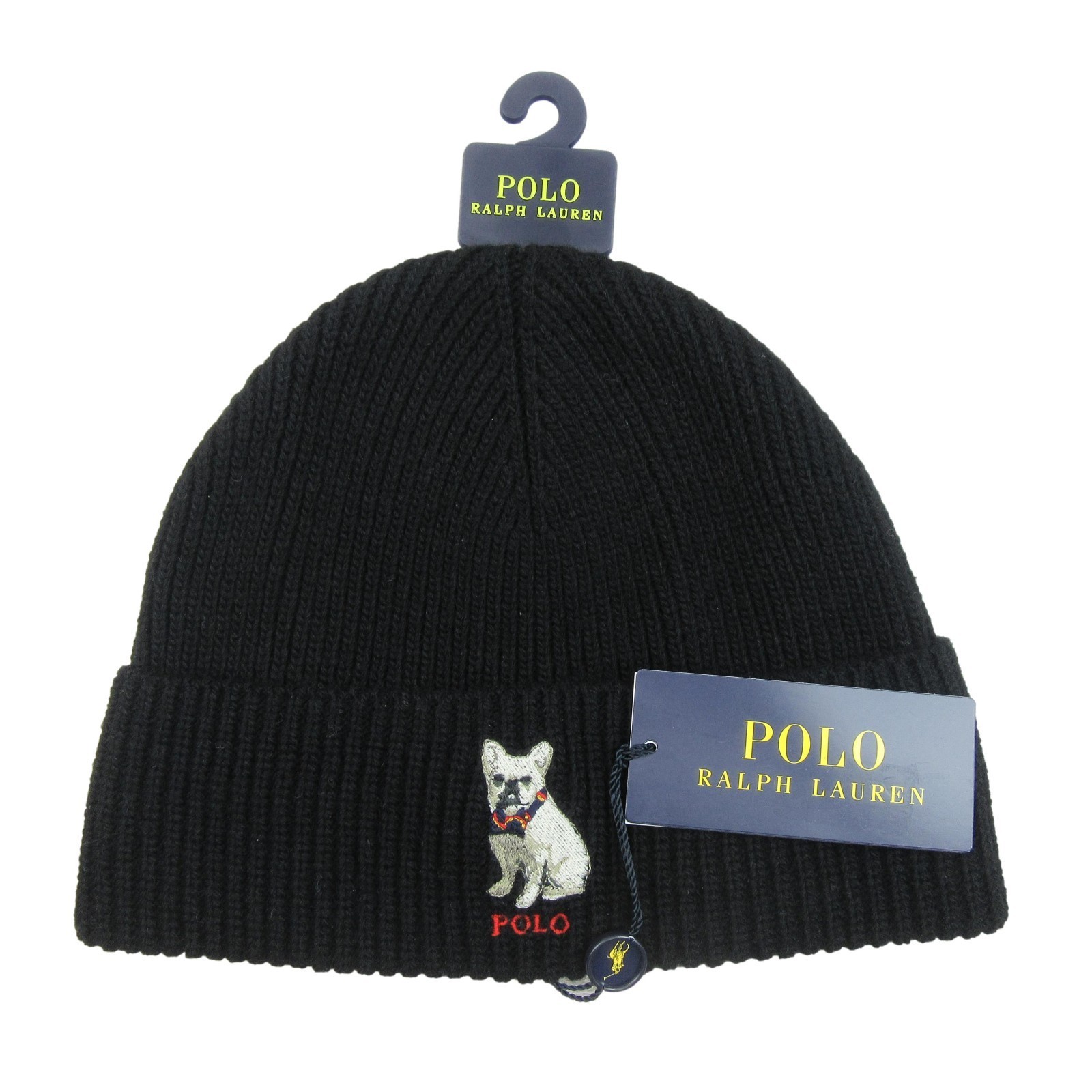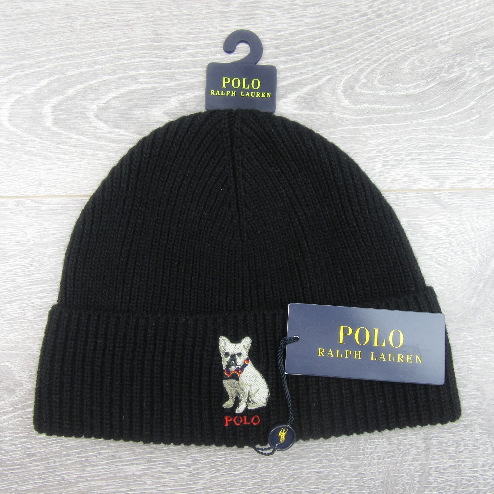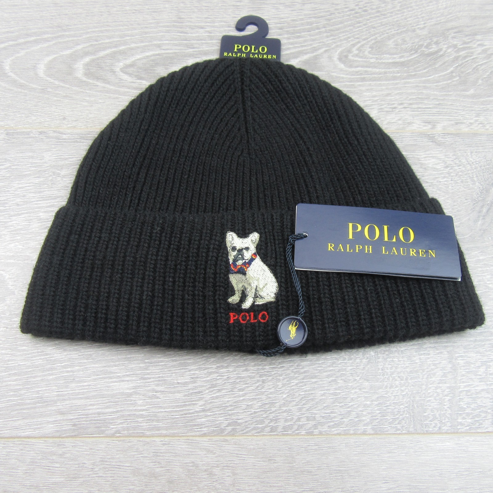 Polo Ralph Lauren RL Embroidered Frenchie Dog Black Beanie Cap