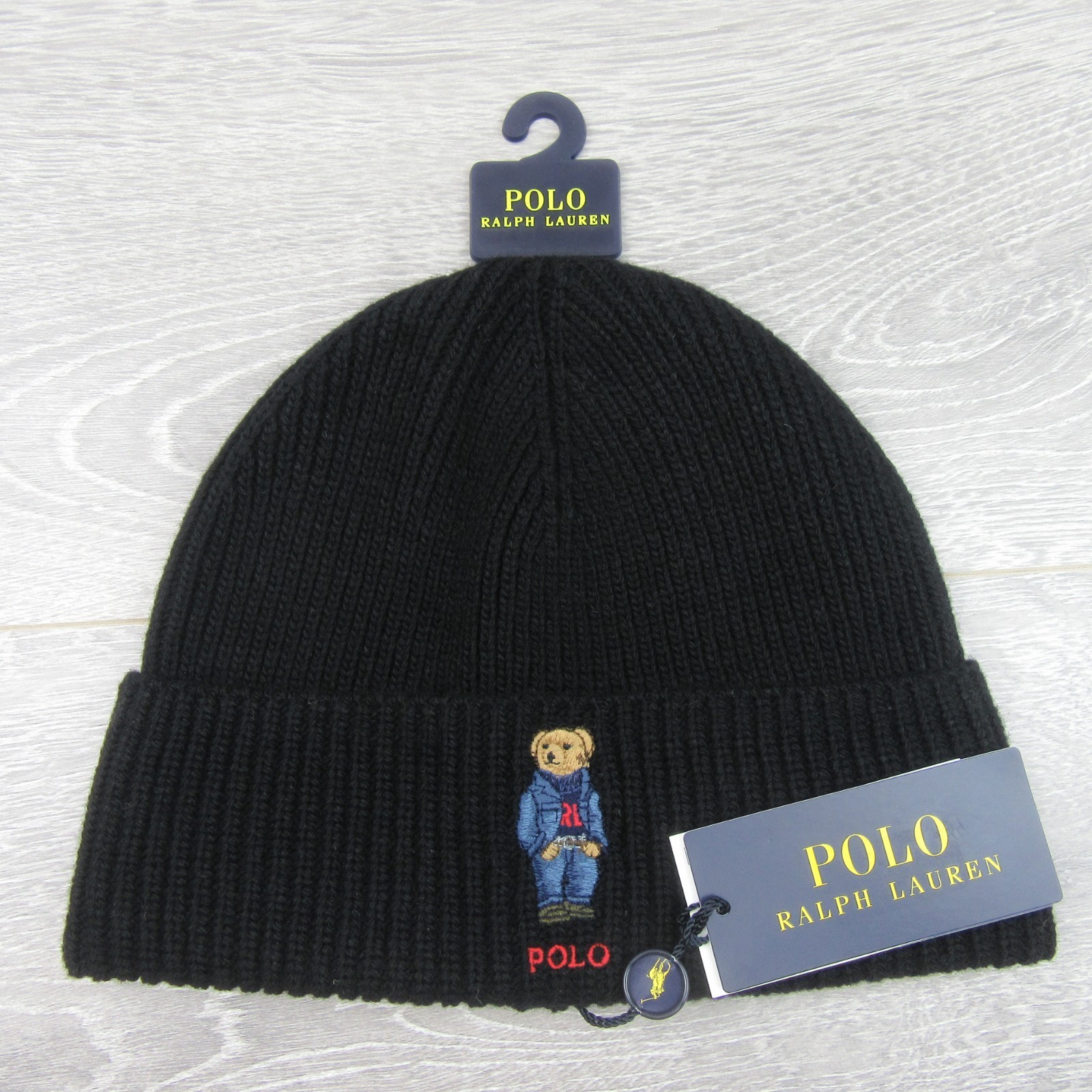 Polo Ralph Lauren RL Embroidered Denim Bear Black Beanie Cap