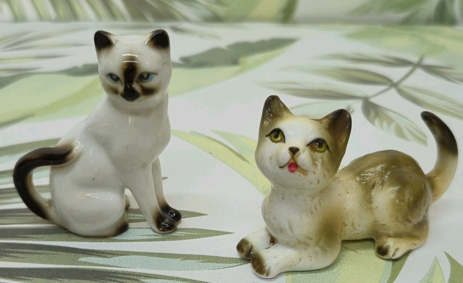 Two Cute Kitty Cat Vintage Miniature Porcelain Figures 2"