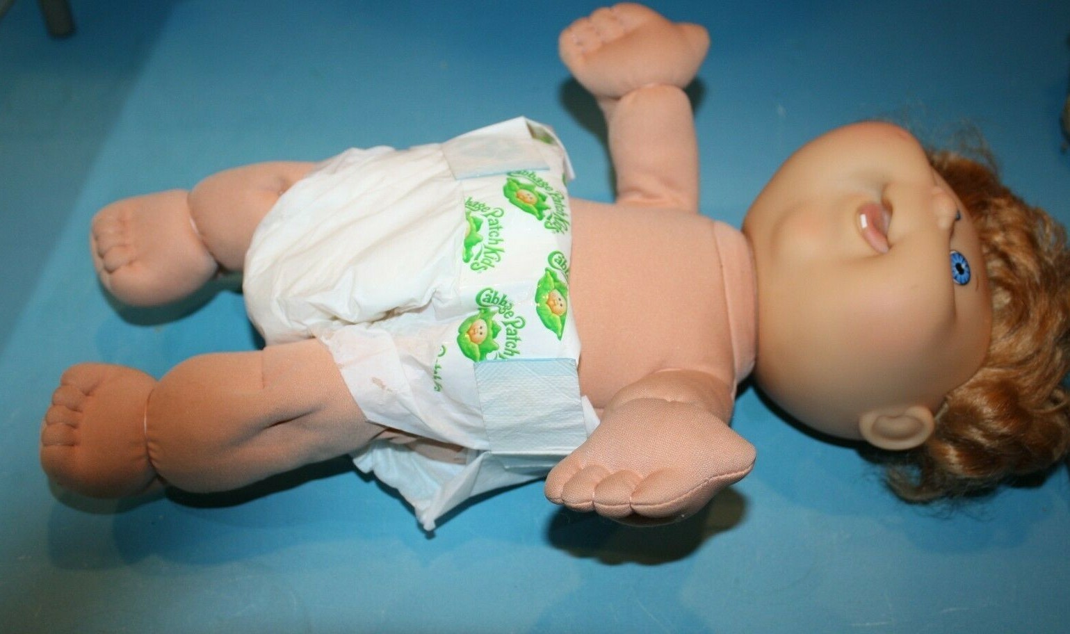Cabbage Patch Doll Baby Giggles Teeth Blonde Hair Curls Blue Eyes CPK Diaper