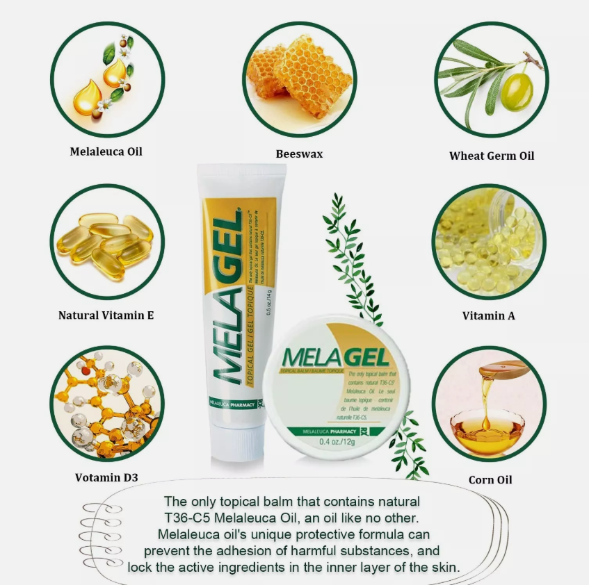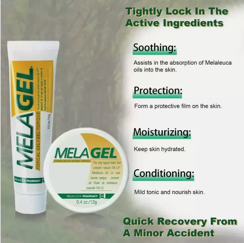· Enjoy the special healing, soothing relief that MelaGel immediately brings to bug bites, minor burns, scrapes, and more. To get the most from MelaGel, apply Melaleuca Oil to a wound, coat the wound with a layer of MelaGel to seal the Melaleuca Oil into the wound before bandaging the wound. MelaGel keeps the Melaleuca Oil in constant contact with the wound, helping it heal.