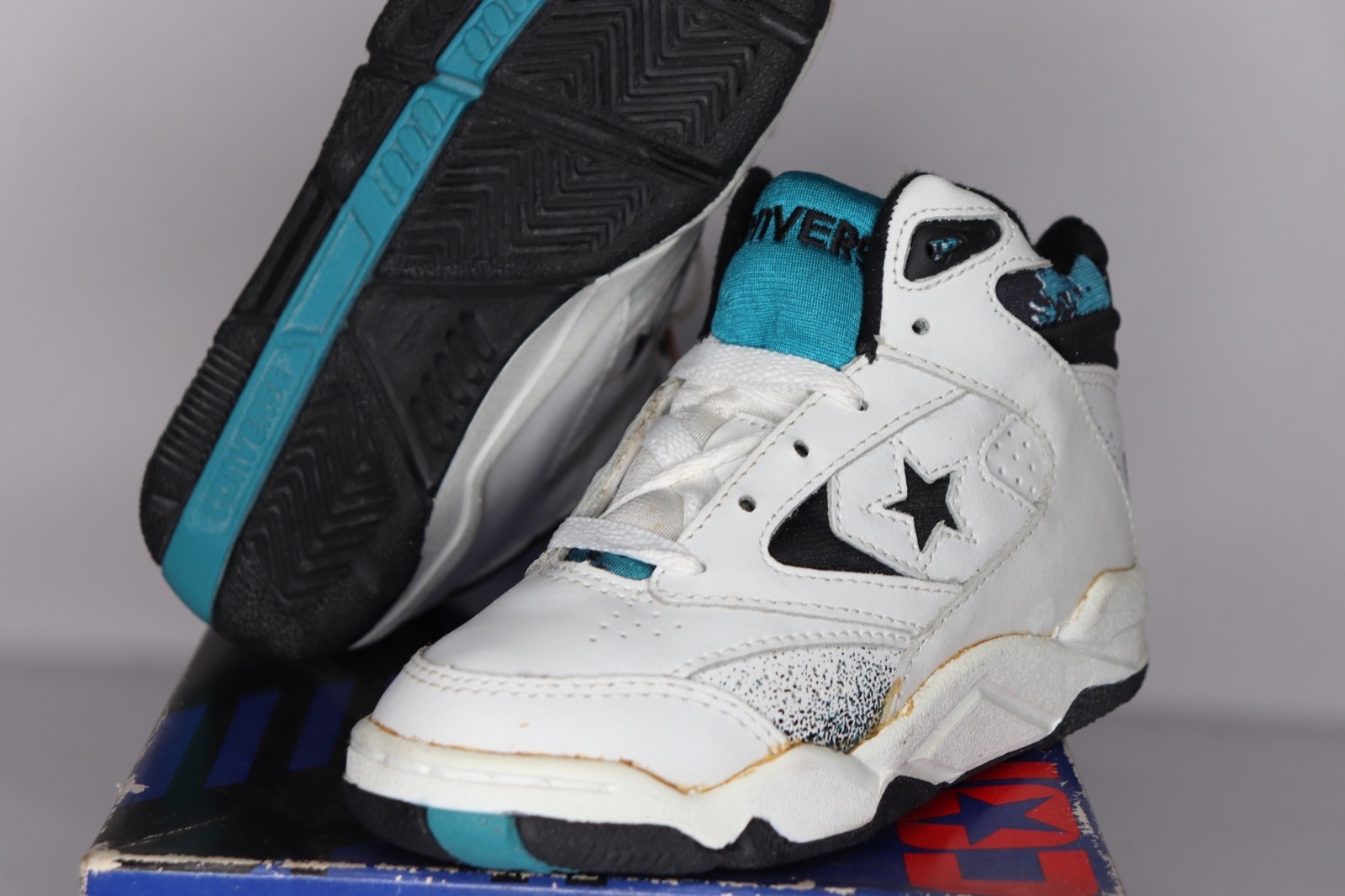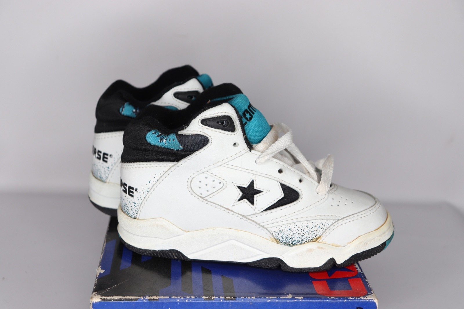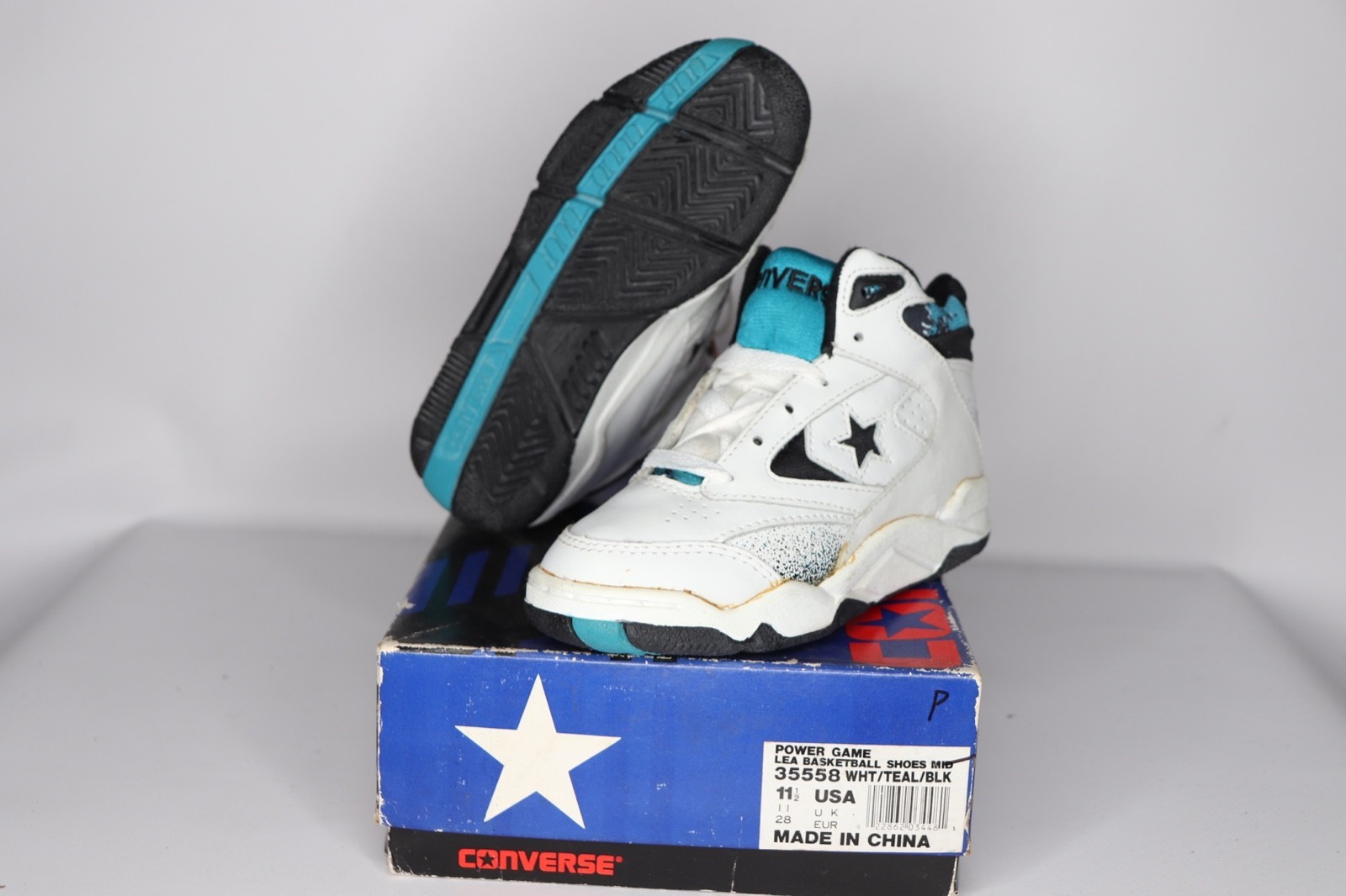 NOS Vtg 90s Converse Power Game Lea Mid Basketball Shoes Sneakers Child 11.5C