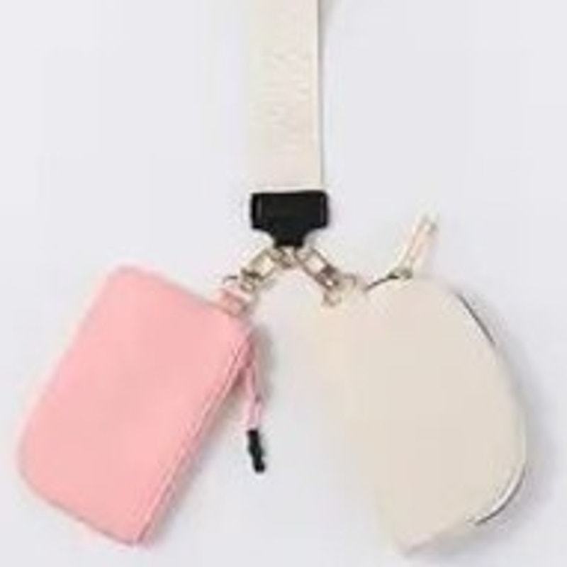 Double Dual Nylon Pouch Wallet Detachable Wristlet Cream Light Pink