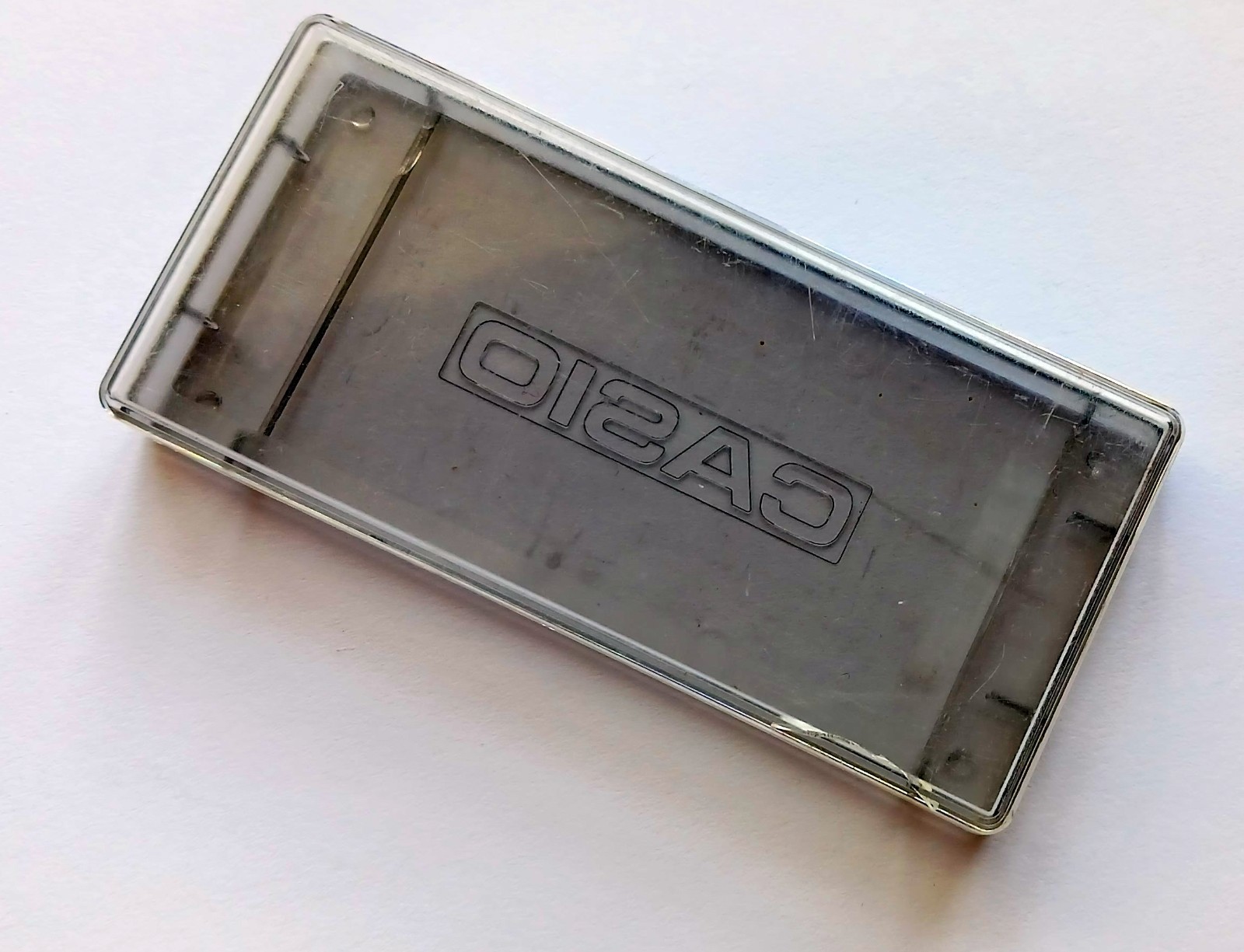 This is an original Casio case for the early to mid 1980's Casio ROM packs, in used condition, with a small crack but no missing pieces, in the clear part of the case. Very much solid enough to store one of your ROM packs. Comes with both the top and bottom pieces. The smoke colored piece on is in very good shape, only the clear piece of the cases has the minor crack in it. This is for just the ROM pack case described here and seen in the photos.