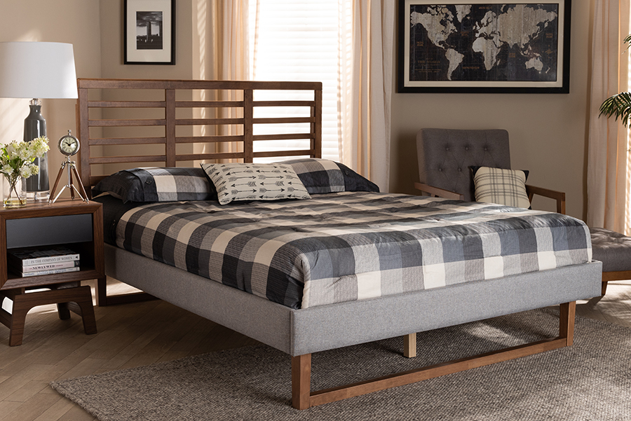 Jasper Light Gray Fabric Ash Walnut Brown Full Size Platform Bed