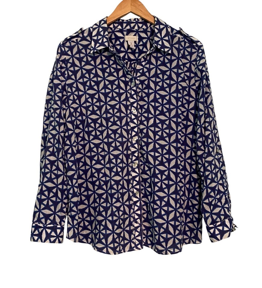 Chicos Blue White Blouse Size 3 Geometric and 40 similar items