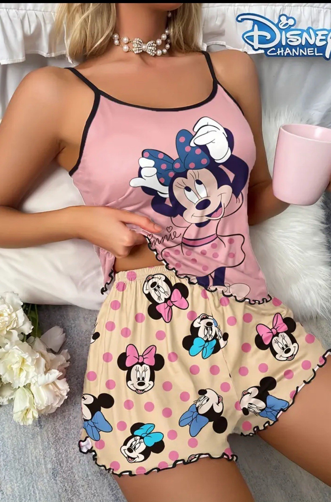 Disney Casual Women's Minnie Mouse Top and shorts Suspender Shorts Pajama Set