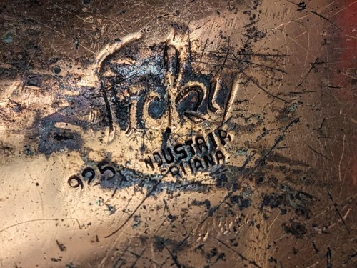 A vendre est un Vicky Industria Perou d'occasion Copper 925 Serling Silver Mayan Bird Bowl 5,5 x 2,5 pouces.