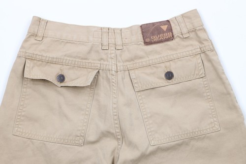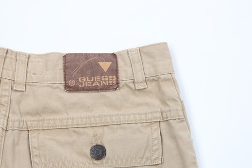 Vintage 90s Guess Jeans Boys 16 Faded Spell Out Baggy Fit Shorts Beige Cotton