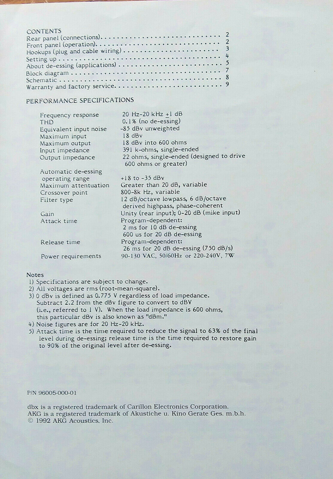 This is an original dbx owner's users manual for the Model 263X DE-ESSER compressor module. It is an original dbx document in very good used condition and complete. There are some marks and minor creases on the covers and some of the pages, but it's in overall very good condition. Original dbx manual, printed in Hong Kong.