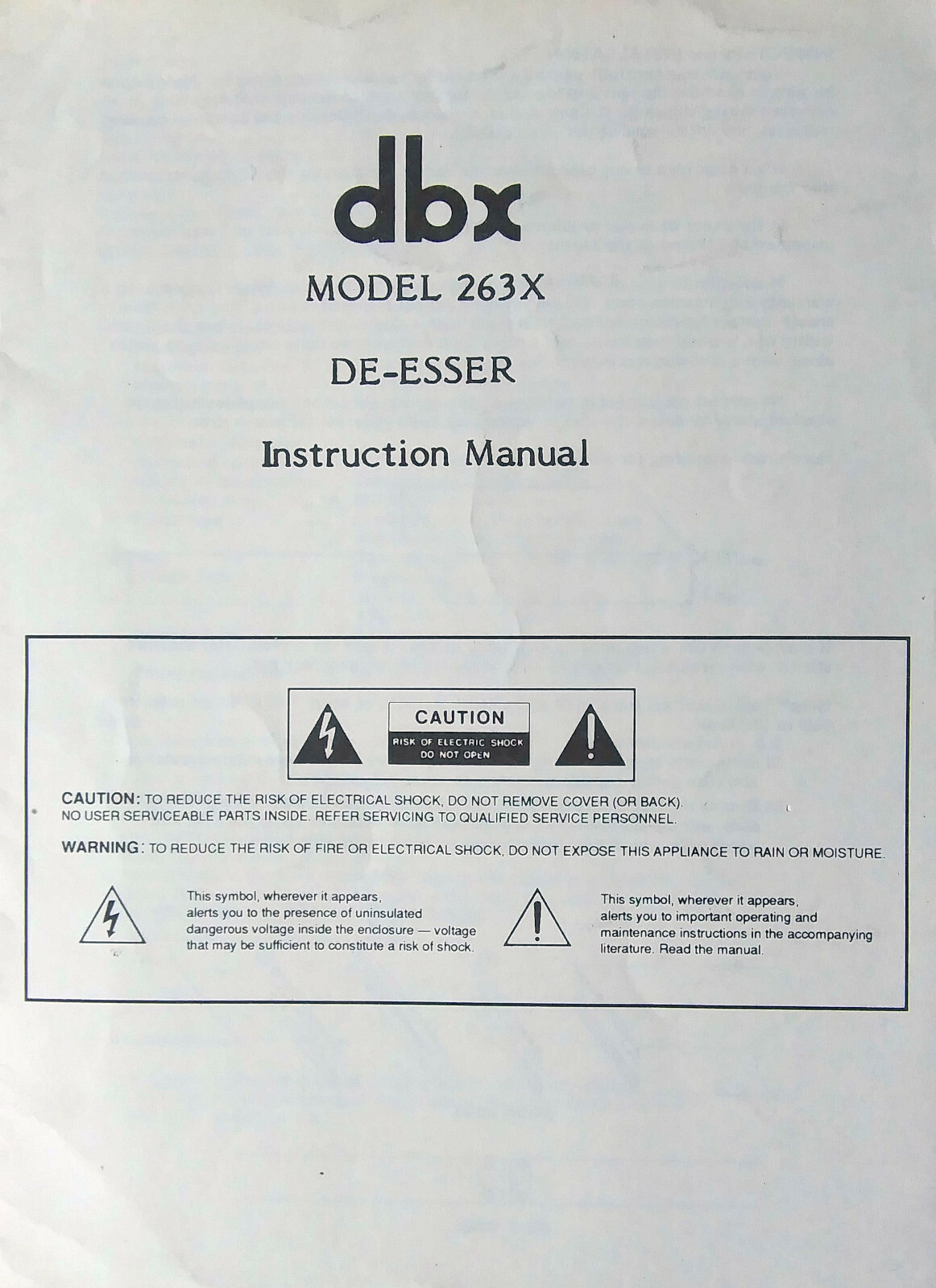 Original dbx Model 263X De-ESSER Module Instruction / Owner's Manual Booklet.