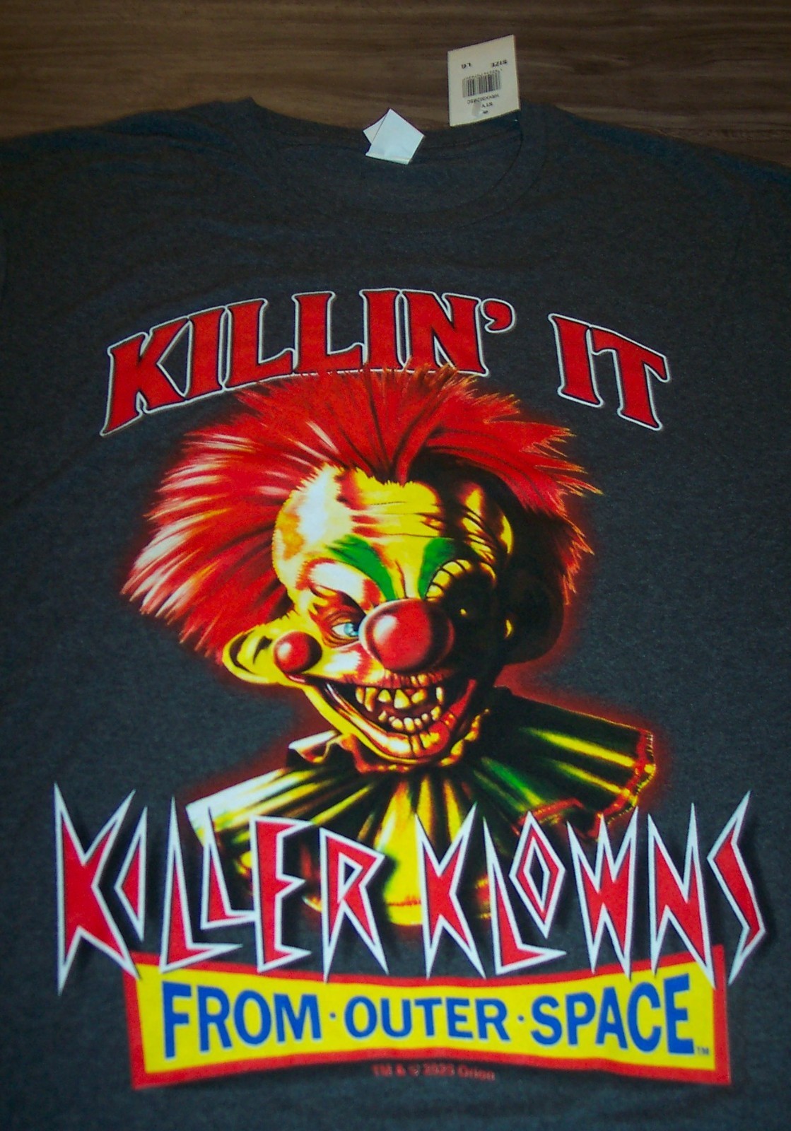 This is a Vintage Style KILLER KLOWNS FROM OUTER SPACE "Killin' It" Movie T-shirt. It is a size MEDIUM and it is NEW with the tag. It is 21 inches from armpit to armpit and 30 inches in length. Combine auctions to save on shipping. D3AG