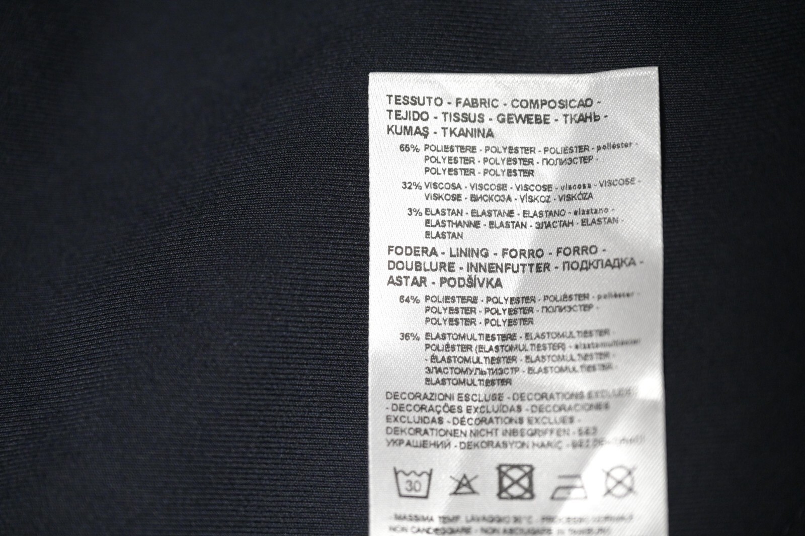 Shell: 65% Polyester; 32% Viscose; 3% Elastane. Lining: 64% Polyester, 36% Elastomultiester