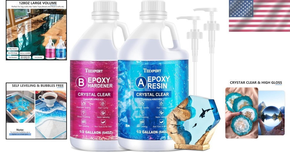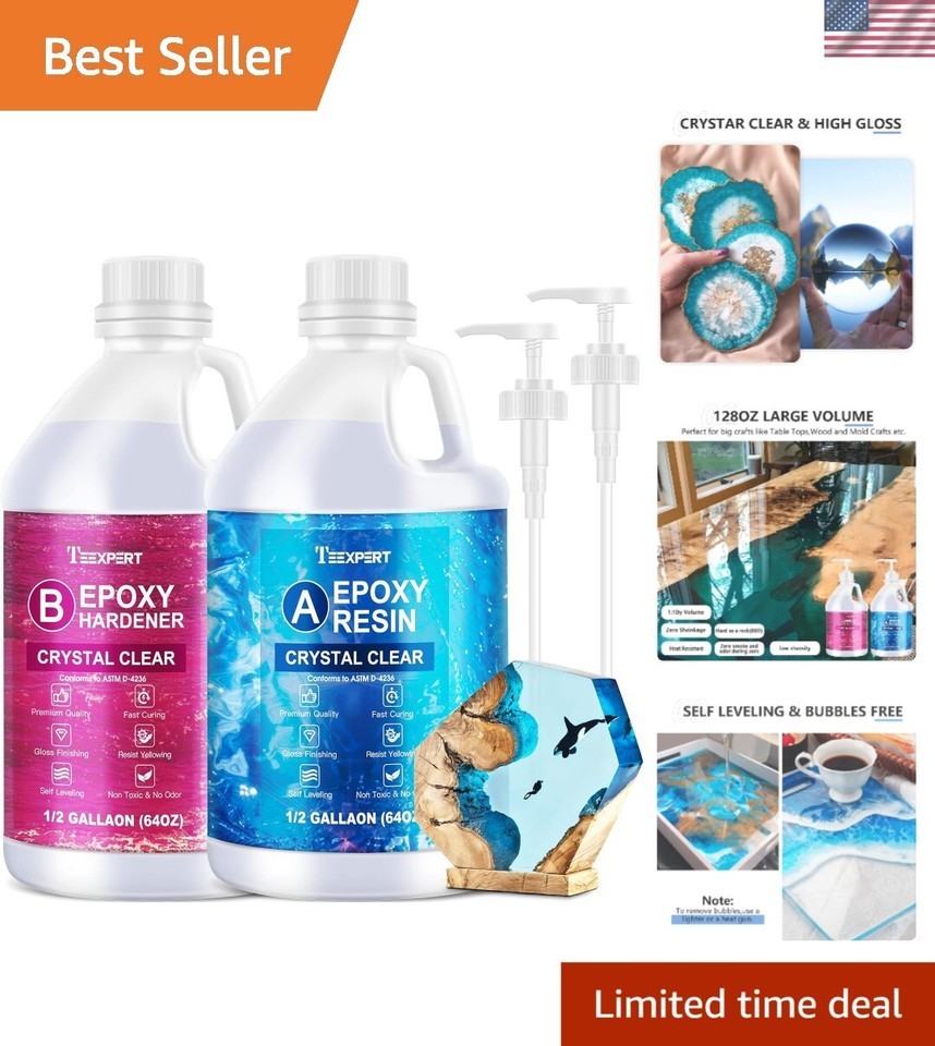 Self-Leveling Crystal Clear Epoxy Resin Kit 1 Gallon for Art and Jewelry Making