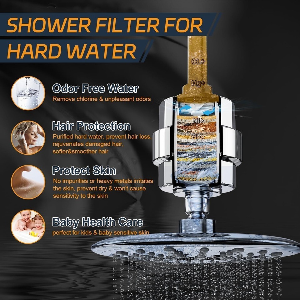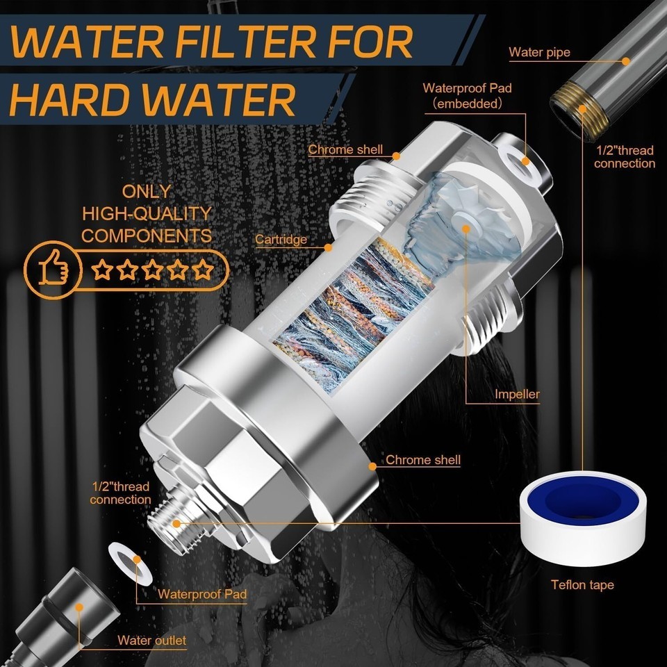Not only does it soften hard water and improve water pressure, but it also comes with 4 replacement cartridges, offering long-term filtration solutions for your family. With tool-free installation and a durable design, our shower filter is the perfect choice for your home.