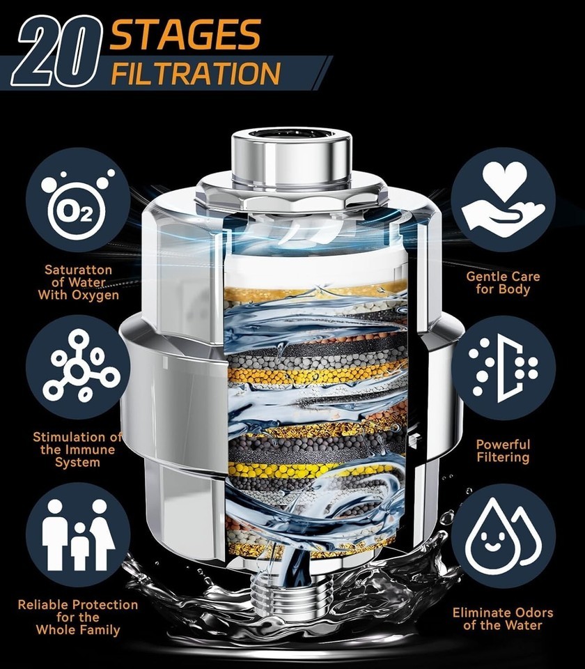 Experience the ultimate shower filtration with our High Output Shower Filter. Featuring a comprehensive 20-stage filtration process, this filter removes a wide range of impurities from your water to provide you with soft, clean, and healthy water for your daily showers.