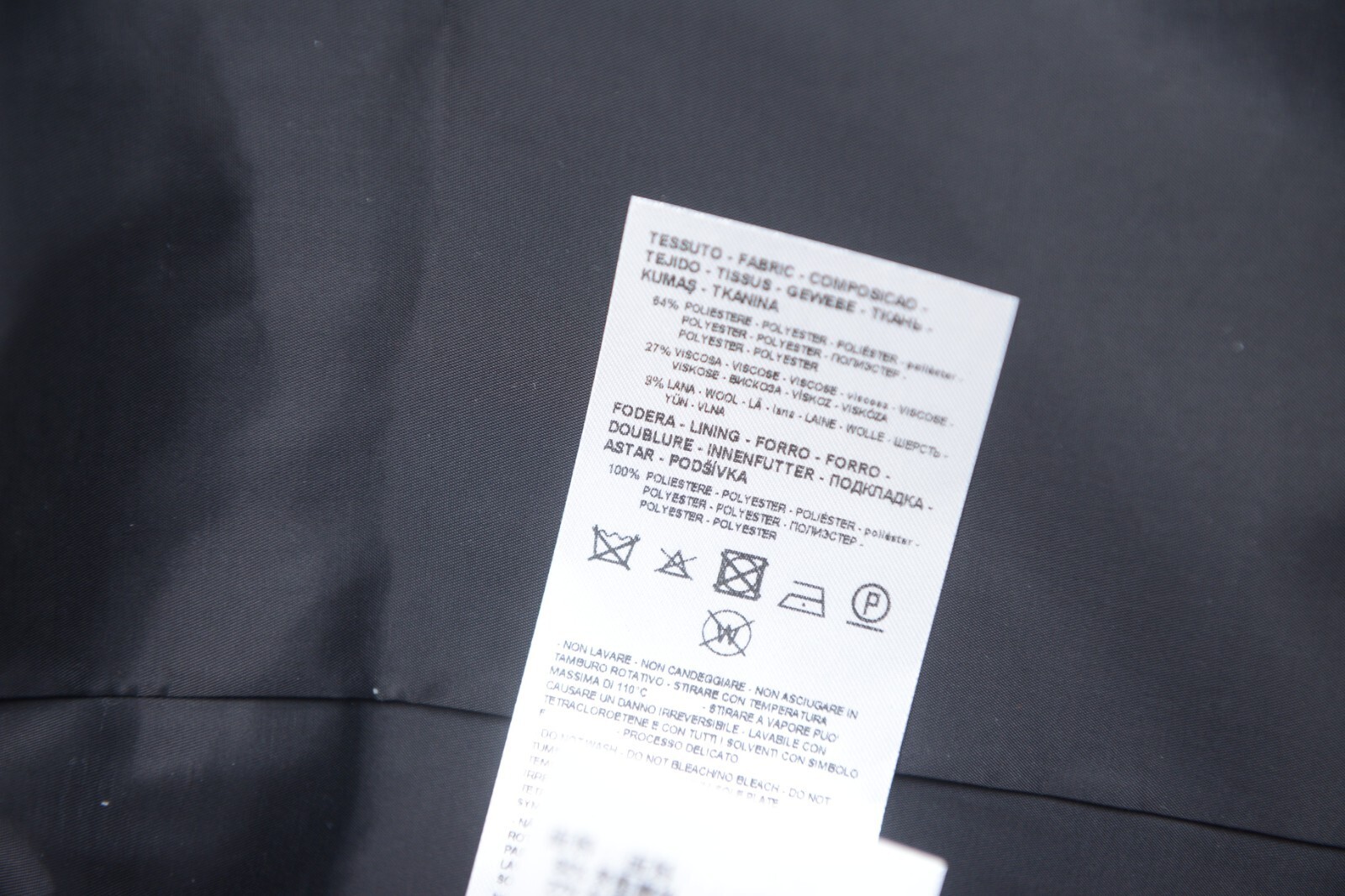 64% Polyester; 27% Viscose; 9% Wool |