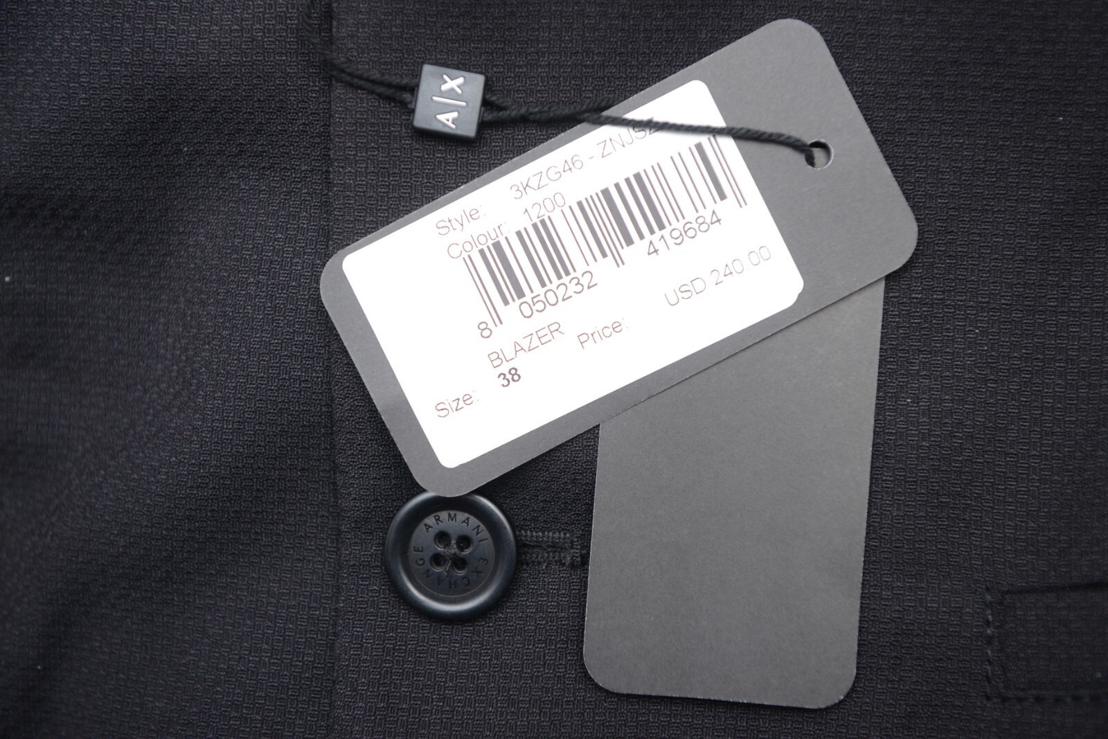 Armani Exchange A|X $240 Men's Black Sport Coat Blazer Jacket 36