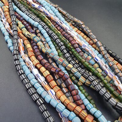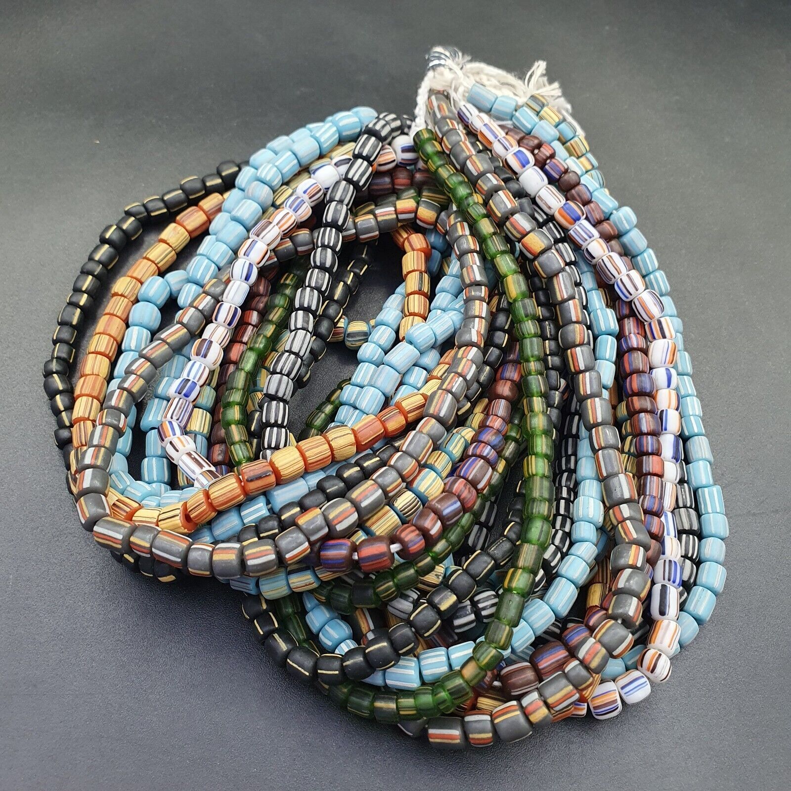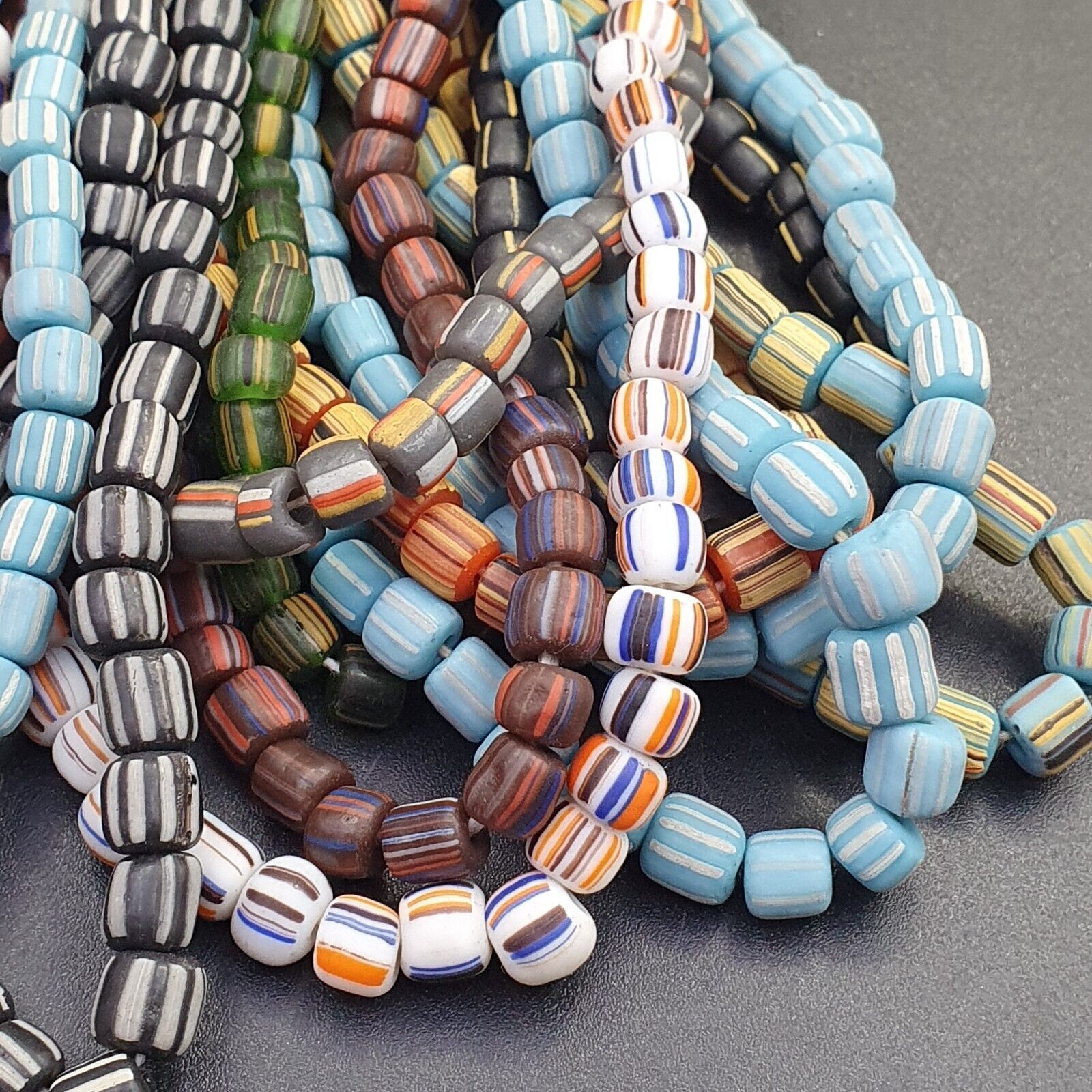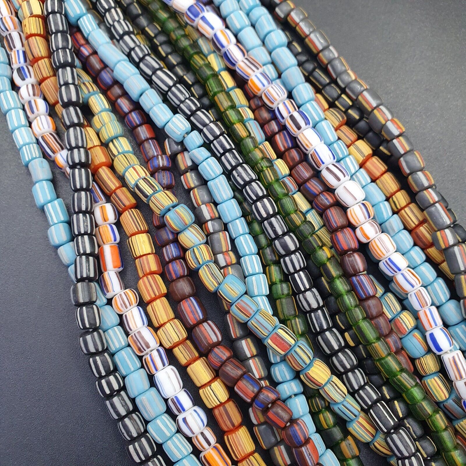 10 Stränge Vintage AFRIKANISCH Multicolor Streifen GLASPERLEN 5-7MM Halskette L8