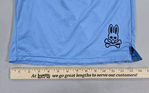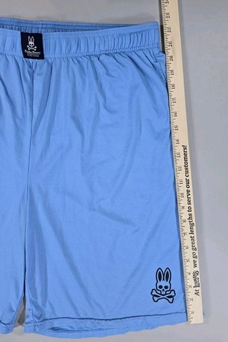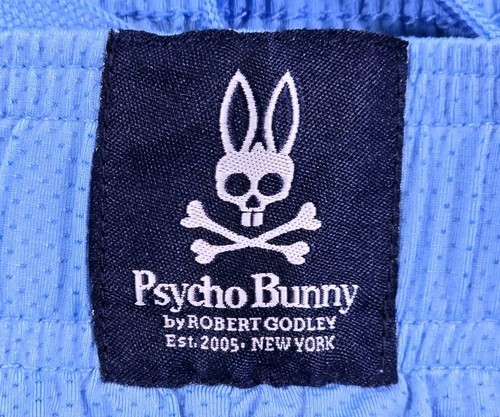 Get ready for your next workout with these Psycho Bunny sweat shorts! The light blue spandex and nylon material will keep you cool and comfortable during your gym session. The drawstring closure and embroidered logo add a stylish touch to these relaxed fit shorts.