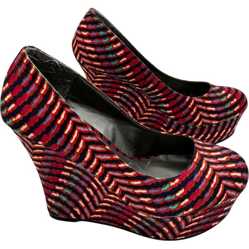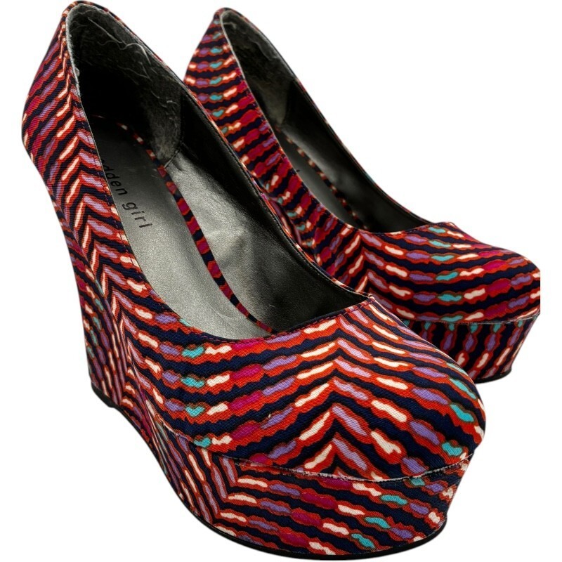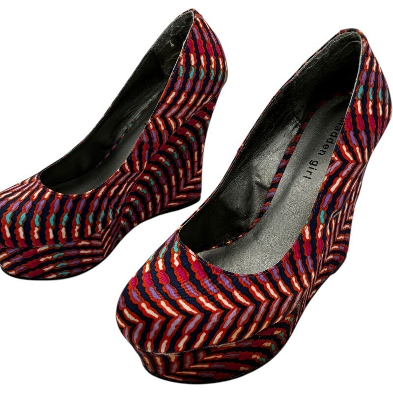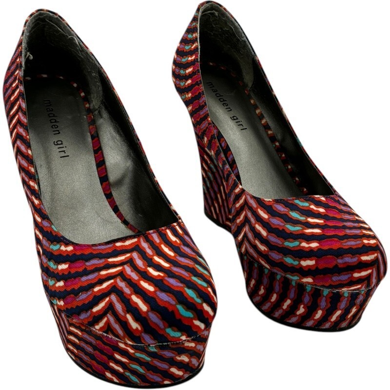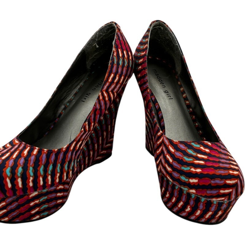 madden girl rockon women's trippy geometric pattern wedge 5 inch high heels 9 M