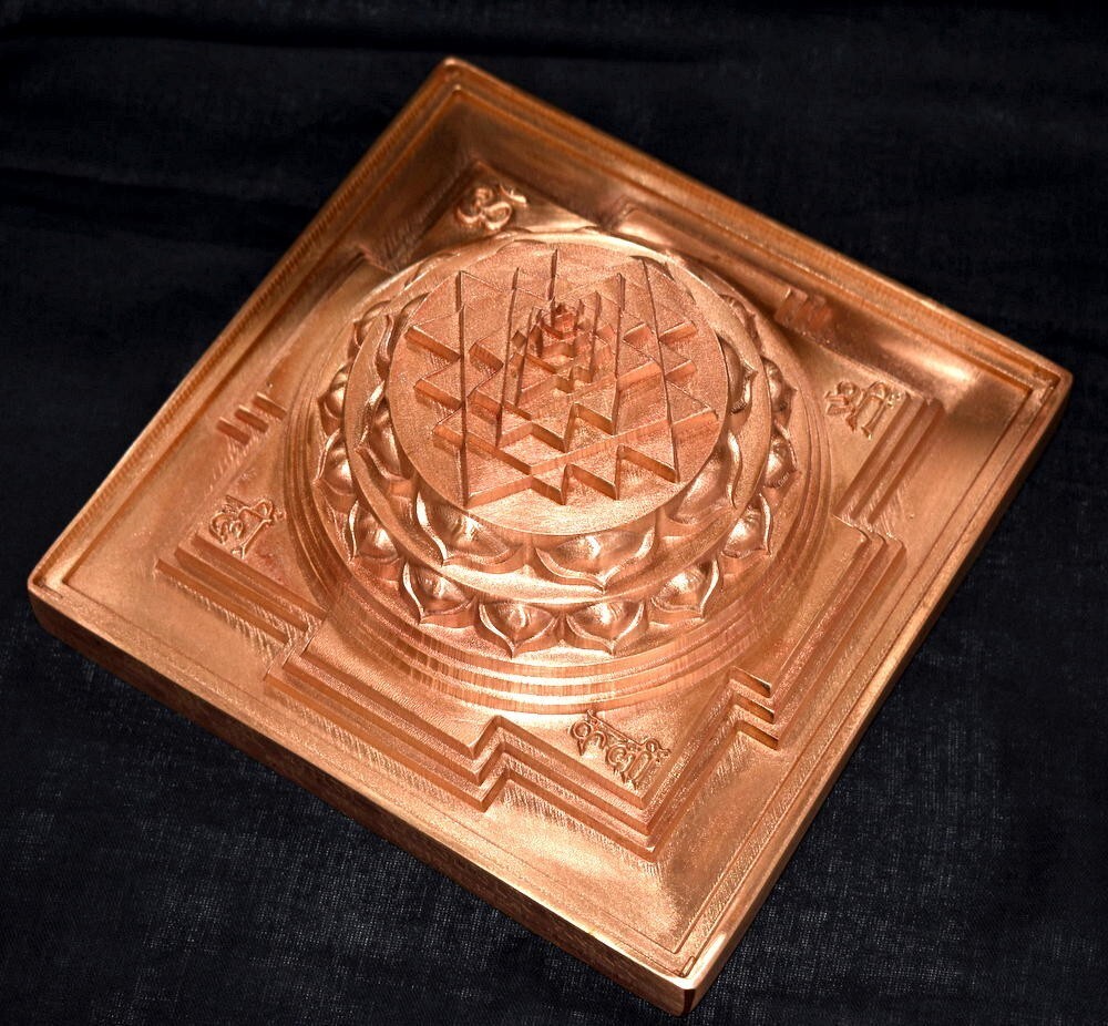***Shree Yantra can be chiseled out of a crystal piece, engraved on crystal, precious stones, on copper or silver metals in plain plans or elevated plans.