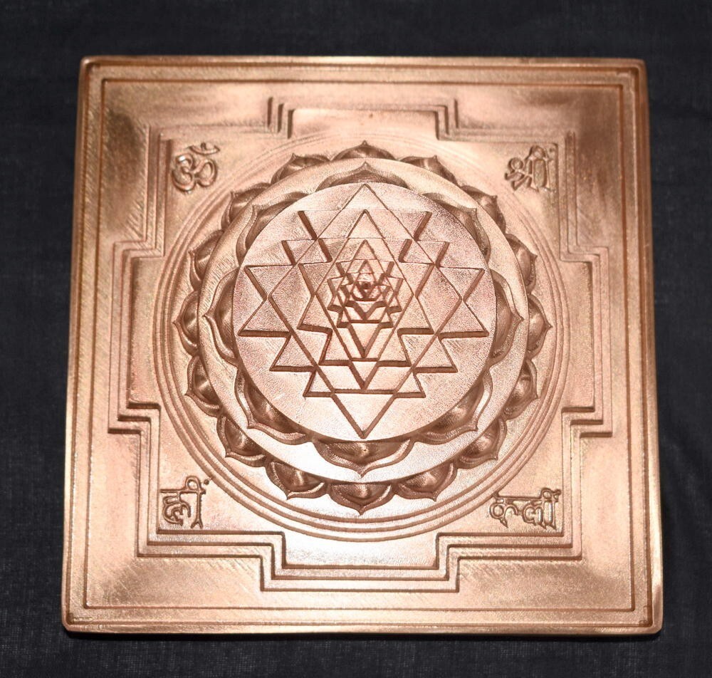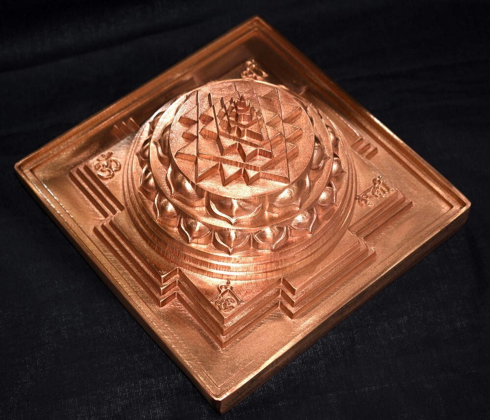 This sriyantra is made from pure Solid copper. This is traditionally buried in the centre of a plot (Nabhi Sathan) to ensure continious waves of prosperity wellbeing to the dwellers.
