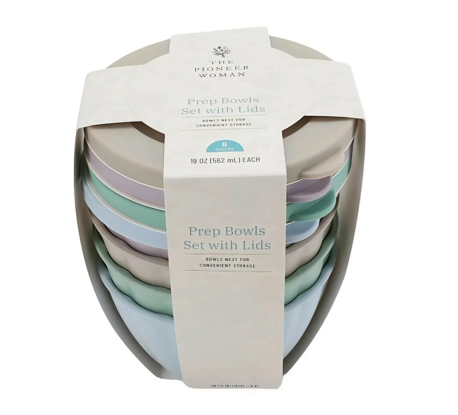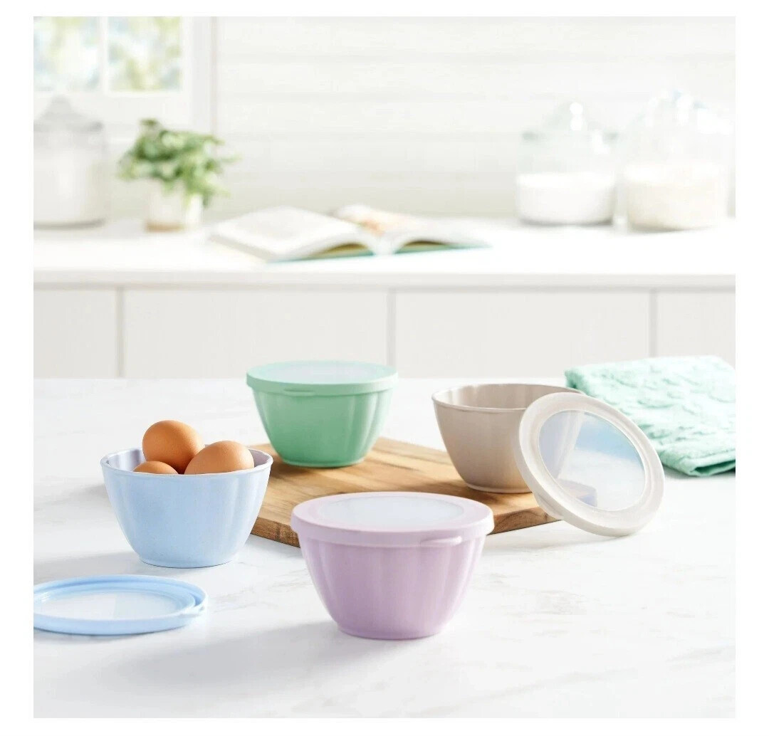Pioneer Woman 8-Pc Melamine Prep Bowl Set Lids Nest for Storage Kitchen Gift NEW