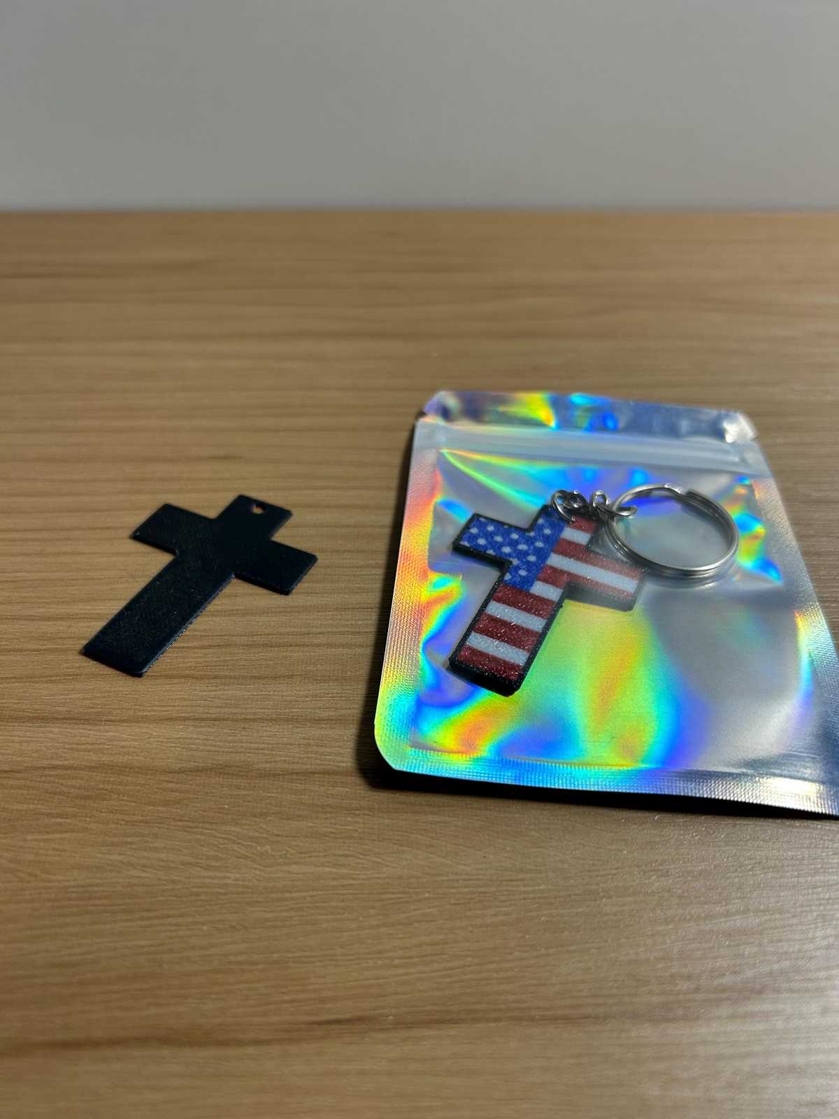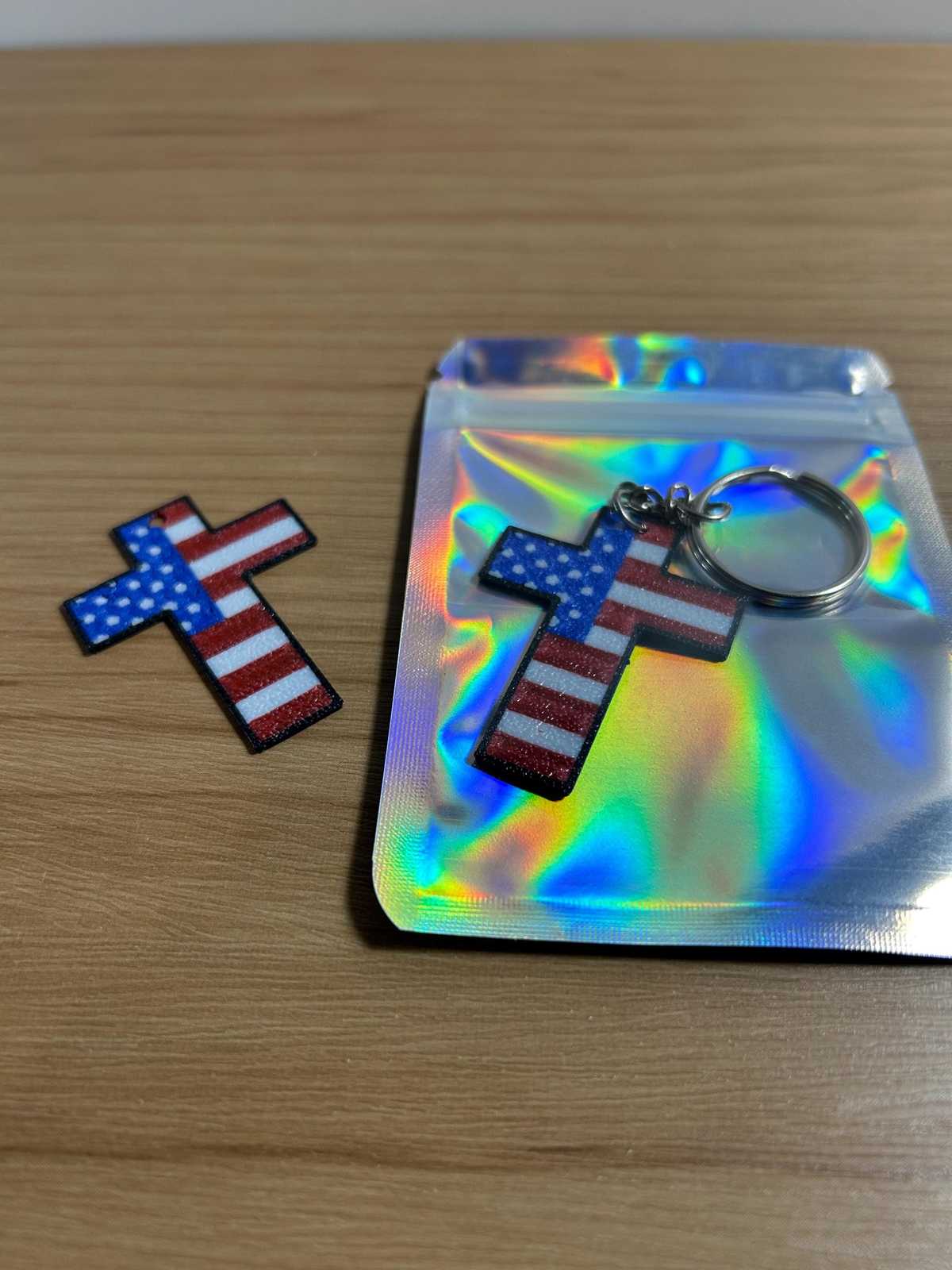 3D Printed American Flag Cross Keychain: Patriotic Christian Gift