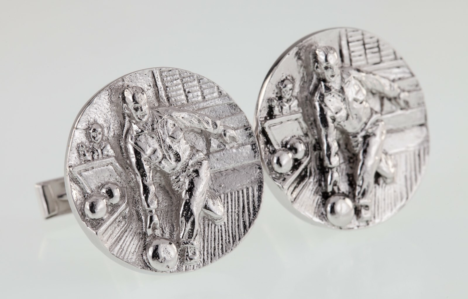 Fenwick Sailors 1950er Jahre Bowling High Relief Sterling Silber Manschettenknopfe