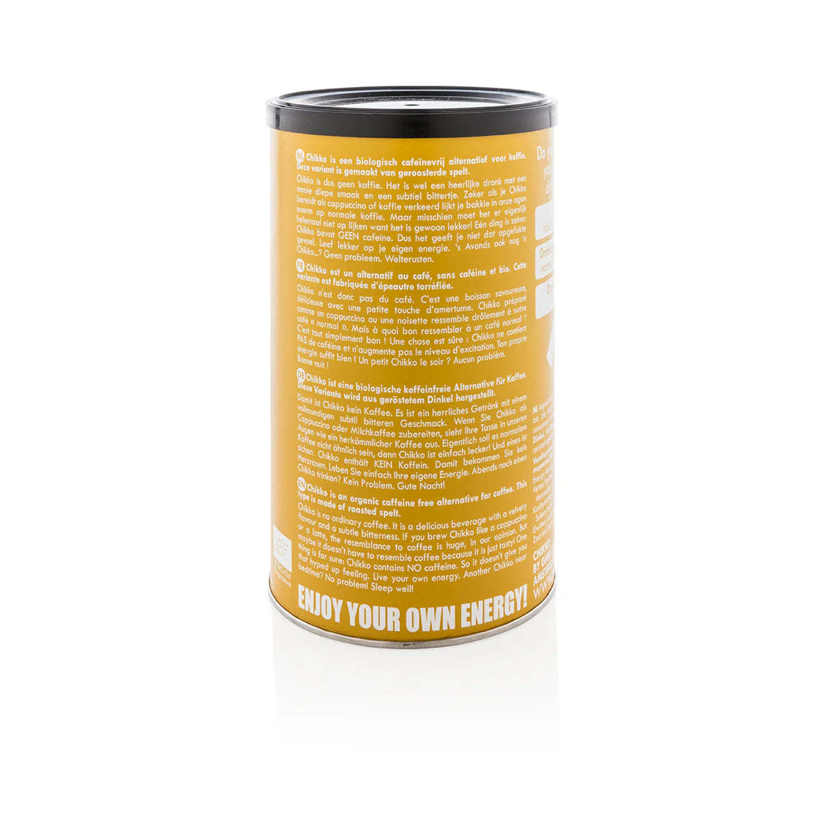 Chikko Not Coffee Spelt is the perfect choice for those looking for a new taste experience. Spelt is an ancient wheat variety known for its unique and delicate flavor, and as a coffee it offers a rich, full and smooth taste that is sure to please. Furthermore, spelt coffee is a great choice for those looking for an alternative to regular coffee. Whether you are looking to start a new morning routine or just want to experiment with new flavors, spelt coffee is an excellent choice for any coffee lover. Savour the refined taste of spelt coffee today!