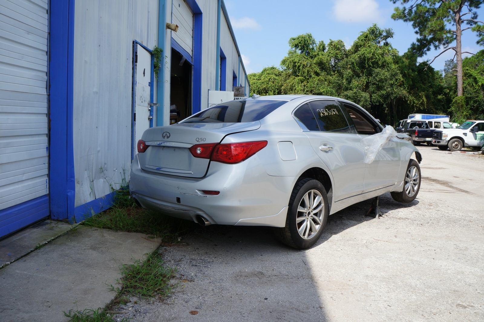 Came off of a 2014 Infiniti Q50 rear wheel drive 4 door sedan. The VIN is JN1BV7AP4EM674587.