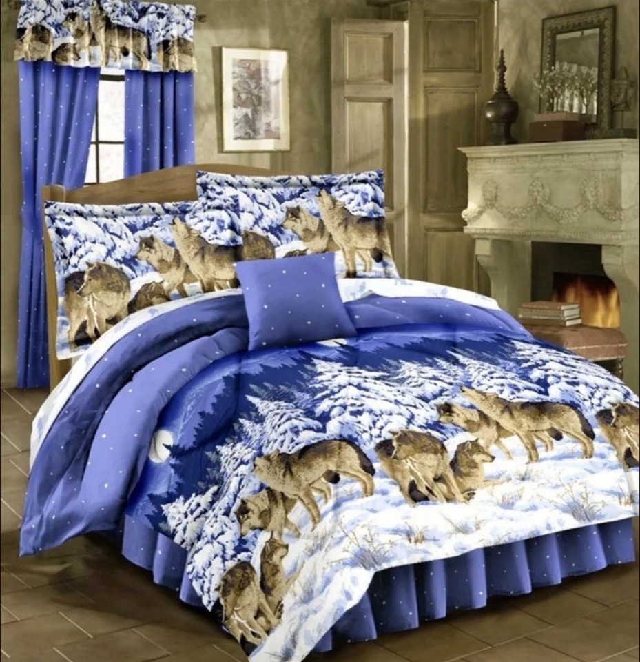 NEW Midnight Wolves Blue Star Drapery Set 2 and 41 similar items