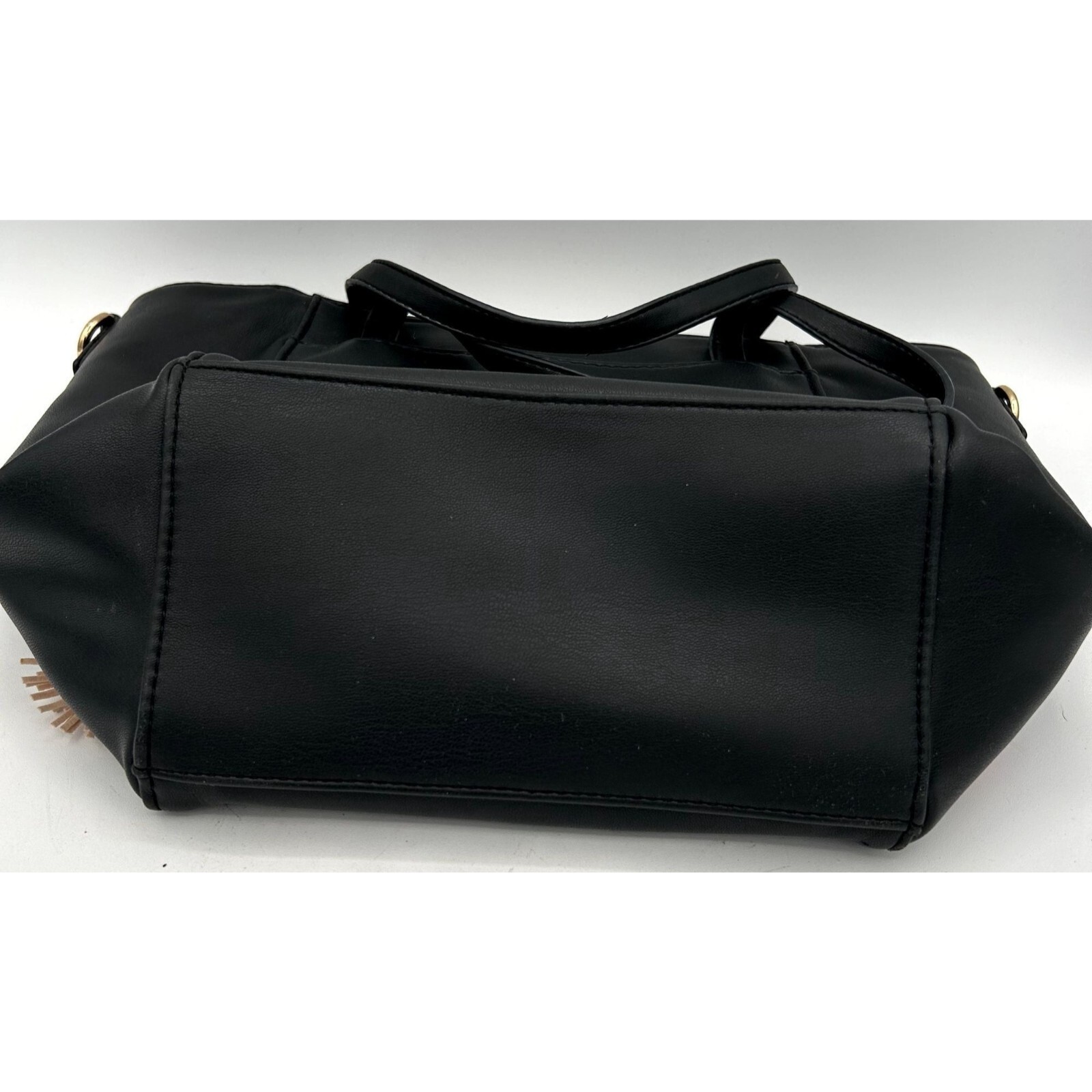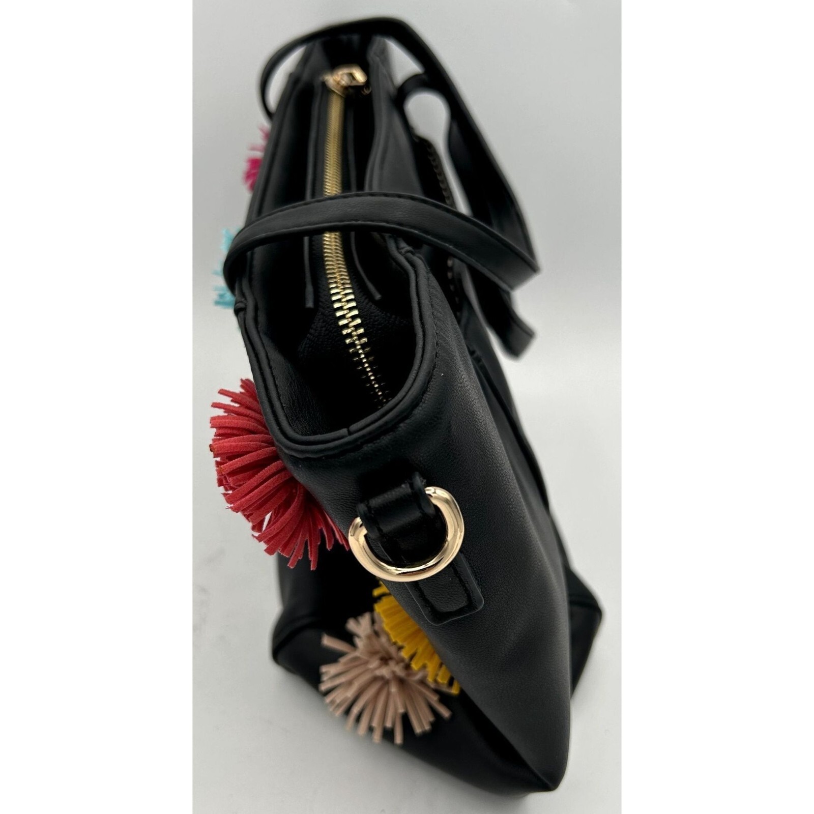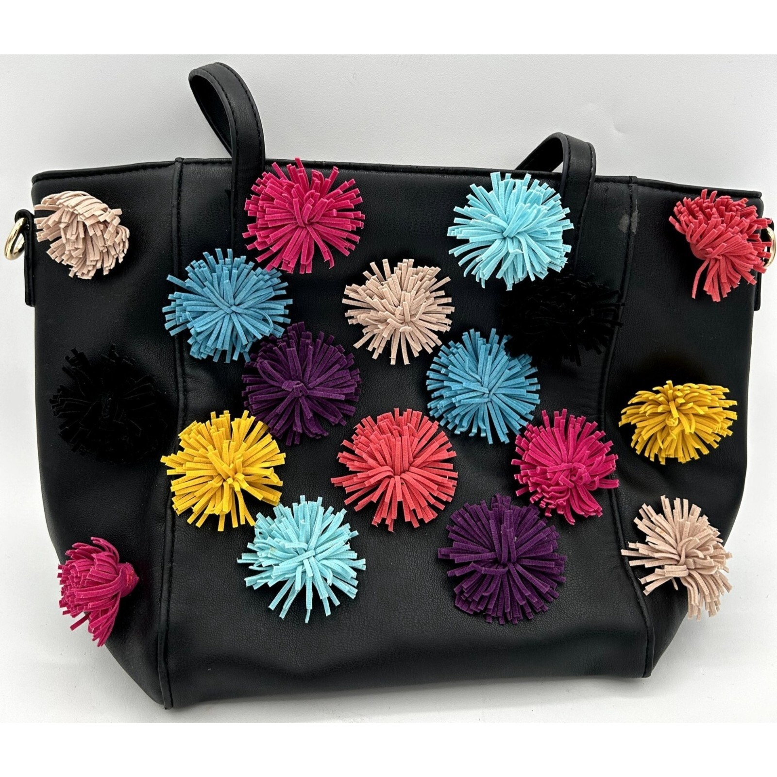 Vintage Gianni Bini black faux leather multi-color pom pom handbag