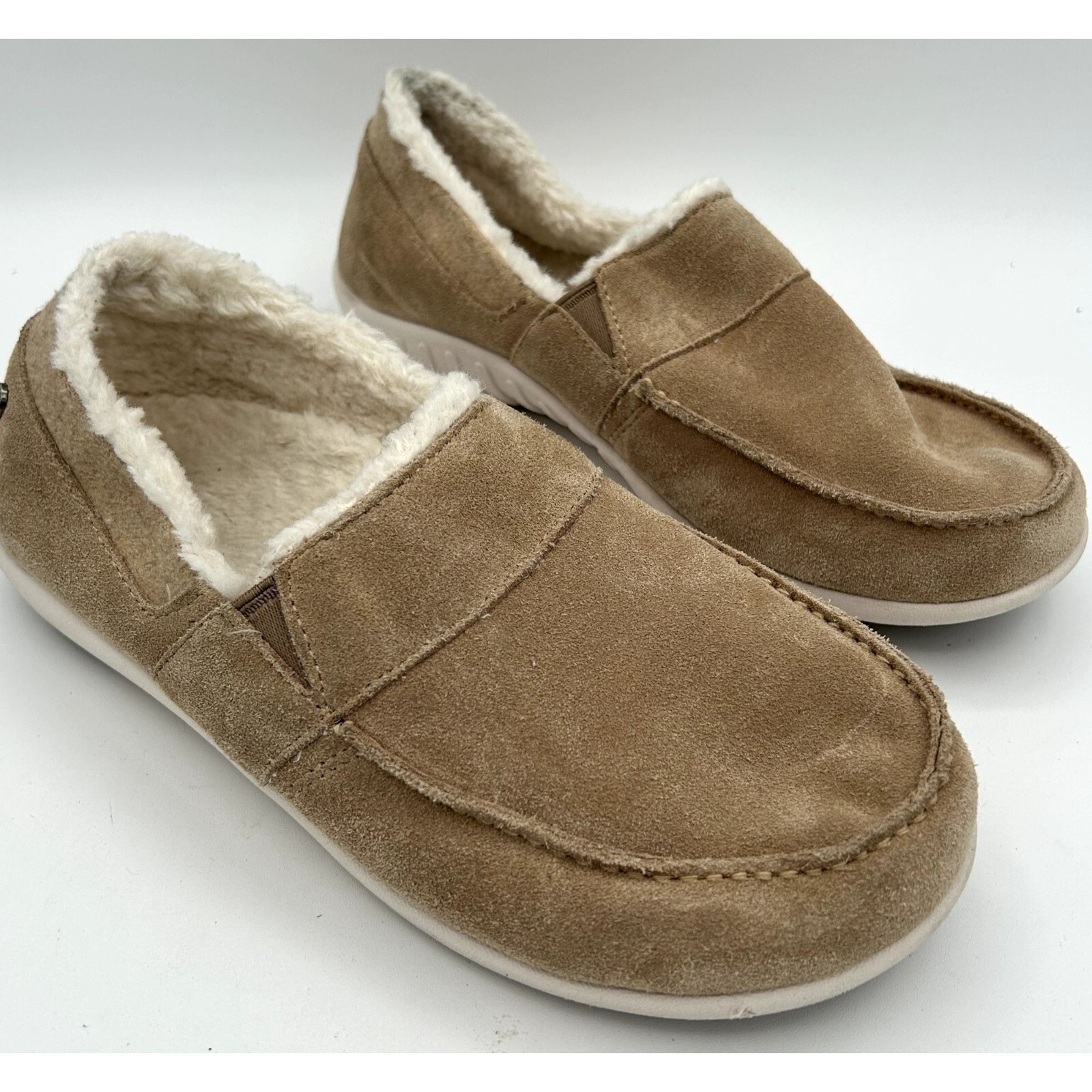 spenco fiesta cozy orthotic mens 8B suede tan soft blended wool lined slipper