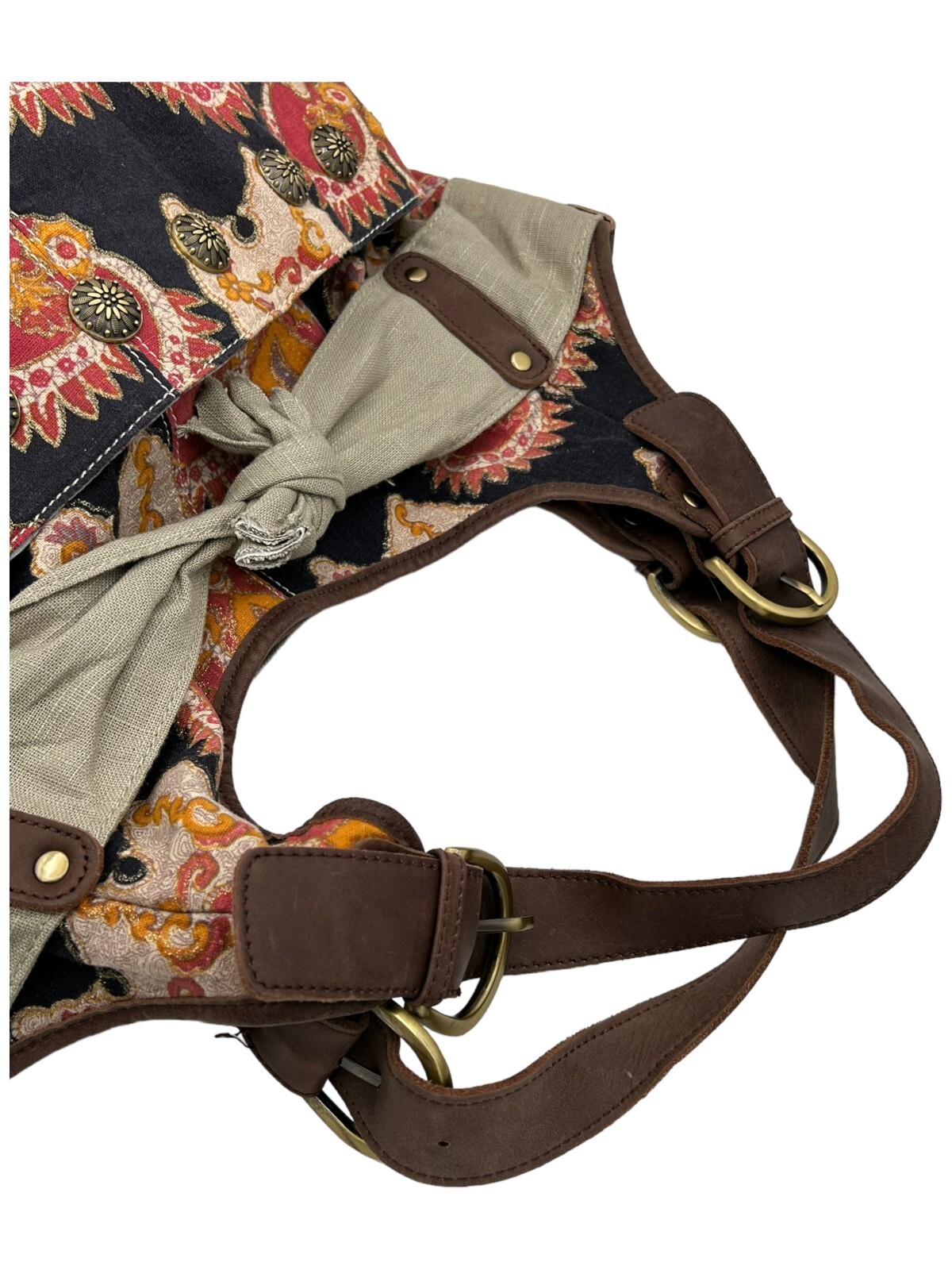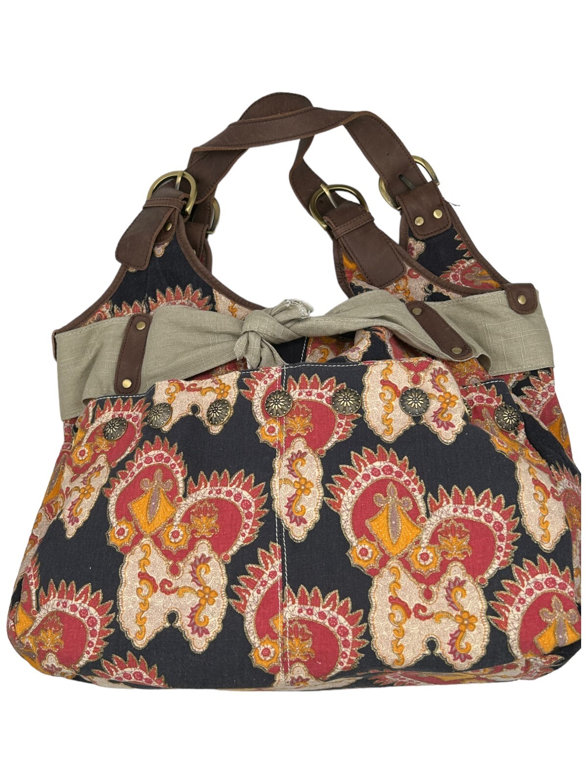Deuce Lux cotton hobo bag with large canvas bow and decorative conchos
