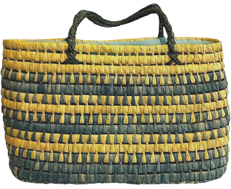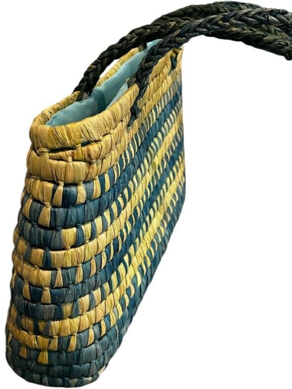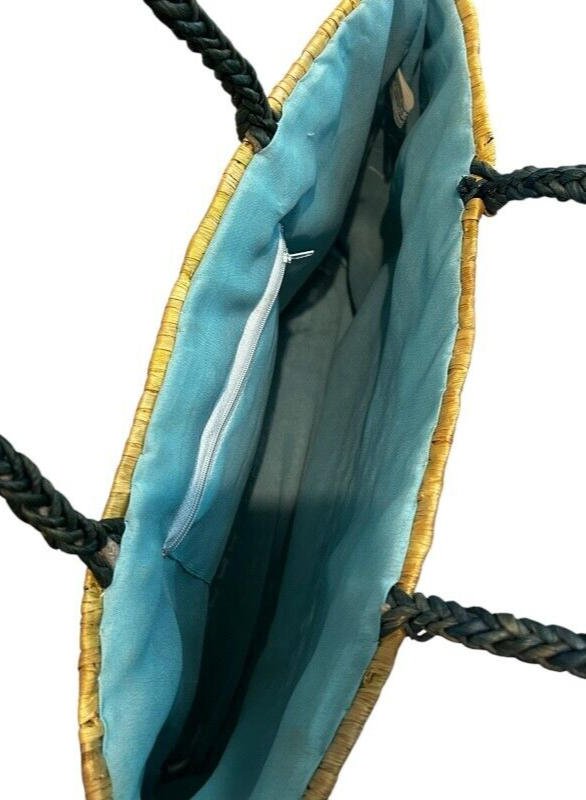 cotton lined straw tote bag beige blue 17 x 10 x 4 inches