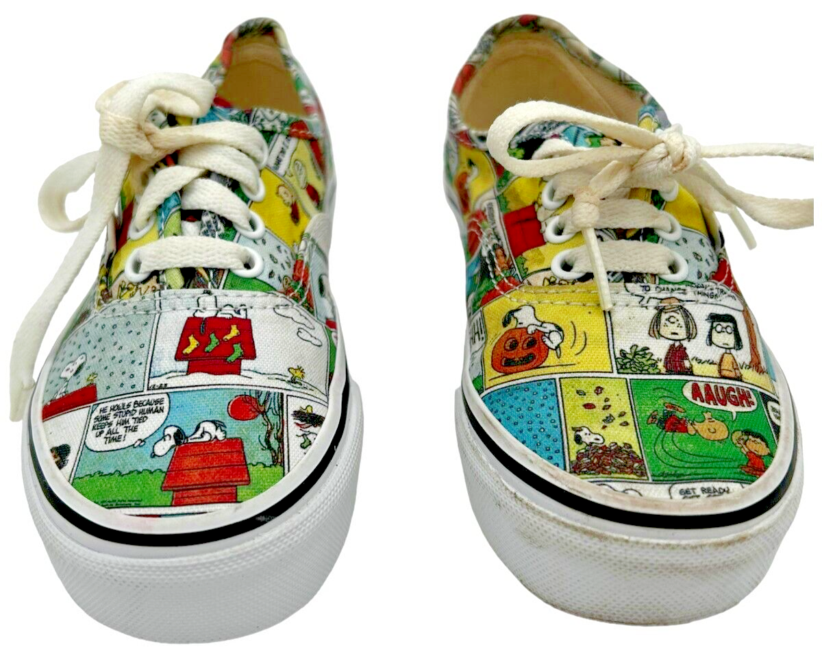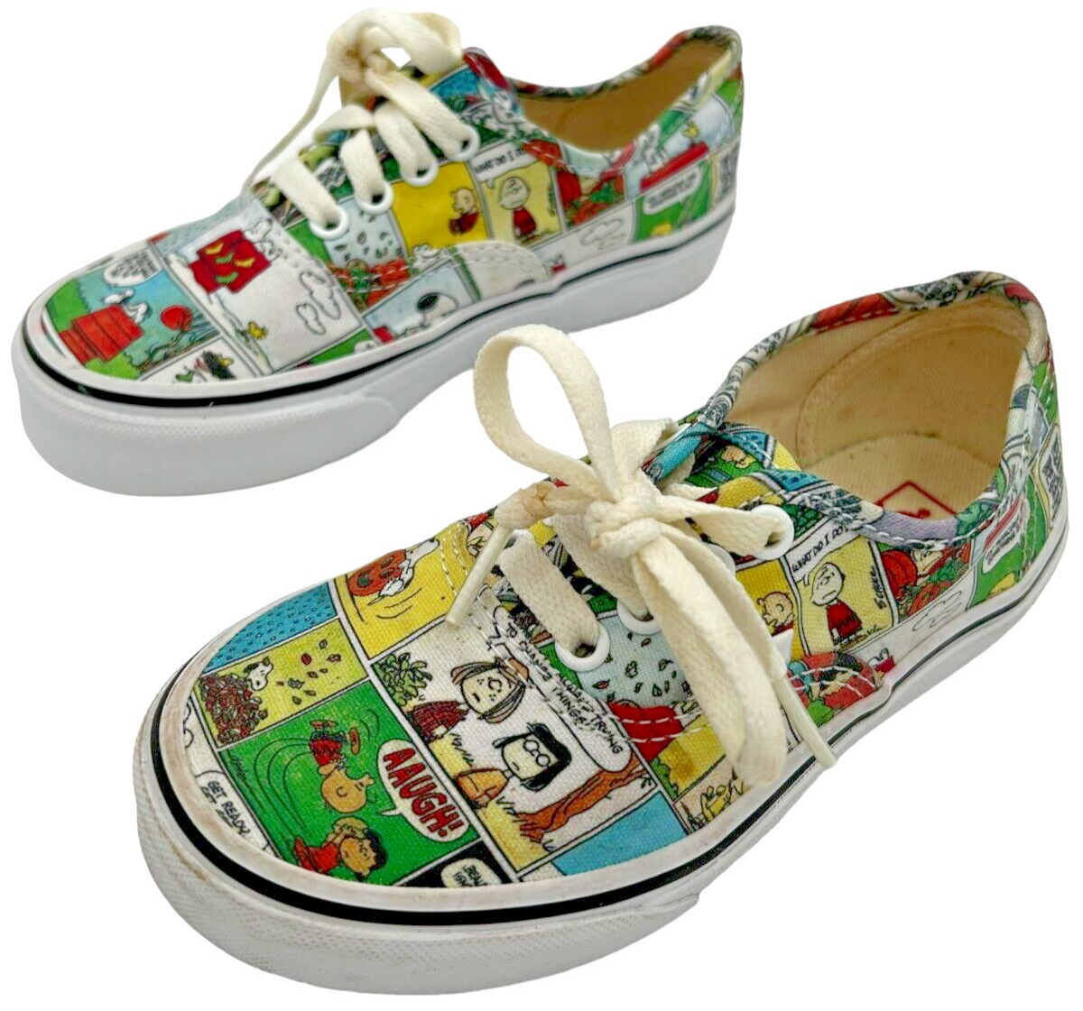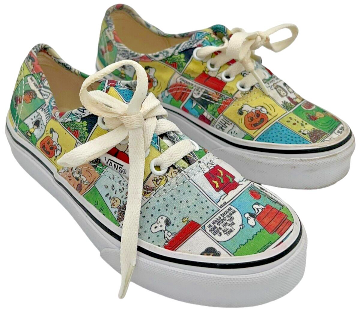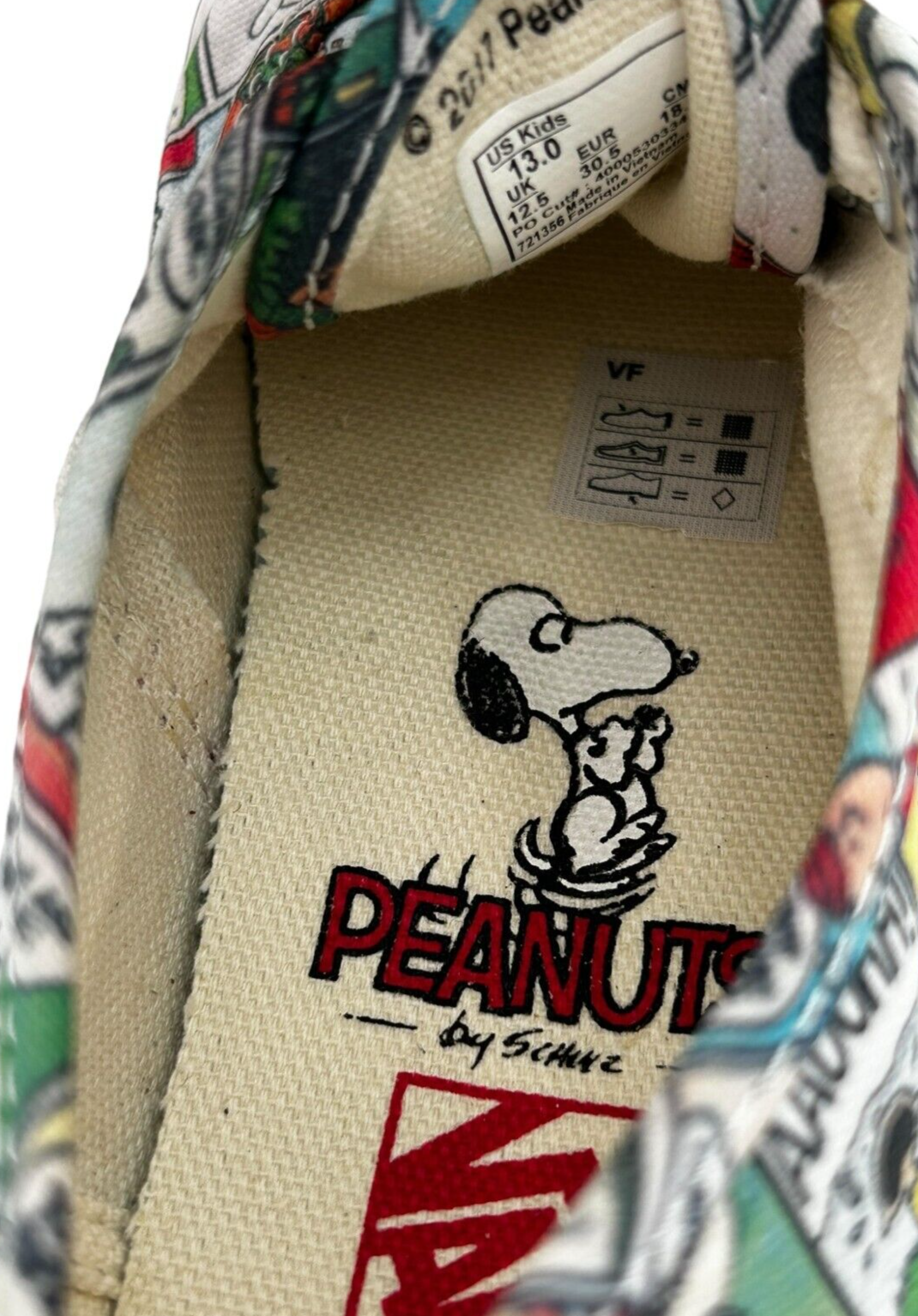 vans x peanuts comic strip off-the-wall unisex kids low-top skate shoe size 13